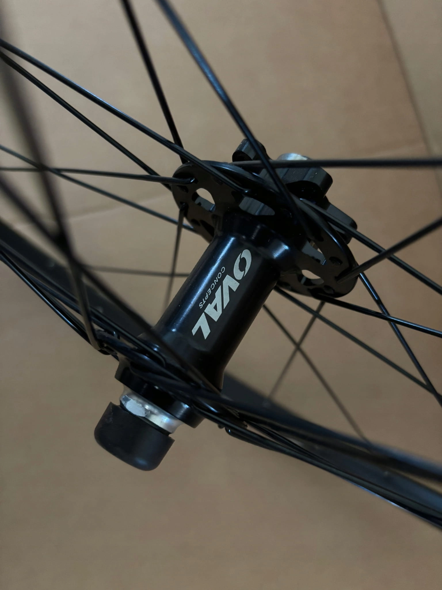 - Piasta: Oval Concepts na łożyskach maszynowych (cartridge bearing), rozstaw 100 mm, mocowanie na szybkozamykacz (100 x 9 mm QR)