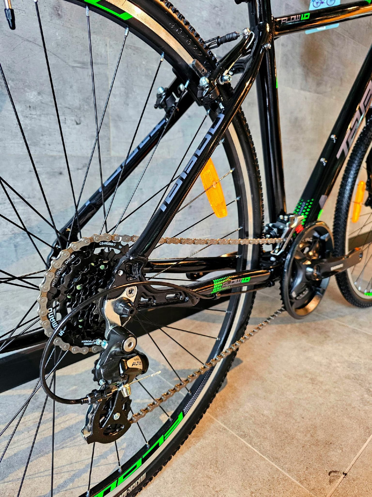 napęd 2×7 wyposażony w sprawdzone komponenty SHIMANO z przerzutkami SHIMANO TOURNEY z przodu i SHIMANO ALTUS z tyłu, zapewnią płynne działanie współpracujących podzespołów