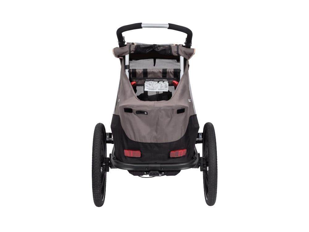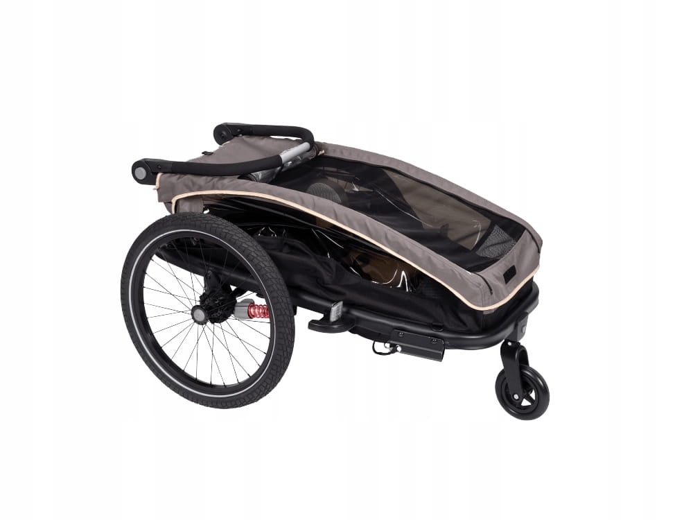 - Trzy funkcje w jednym: przyczepka rowerowa, wózek spacerówka,