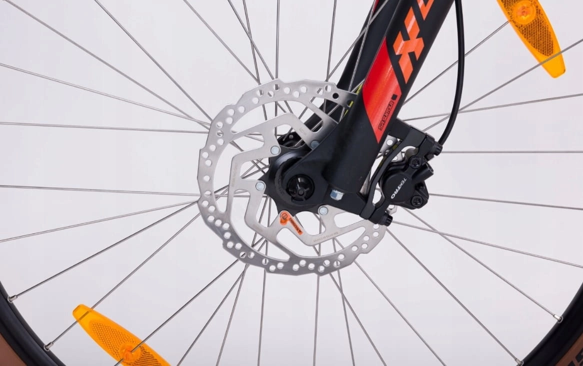 - Hamulce: tarczowe hydrauliczne Shimano MT200 / Tektro (w zależności od partii produkcji) 2-Piston RT10 CL 180 / 160