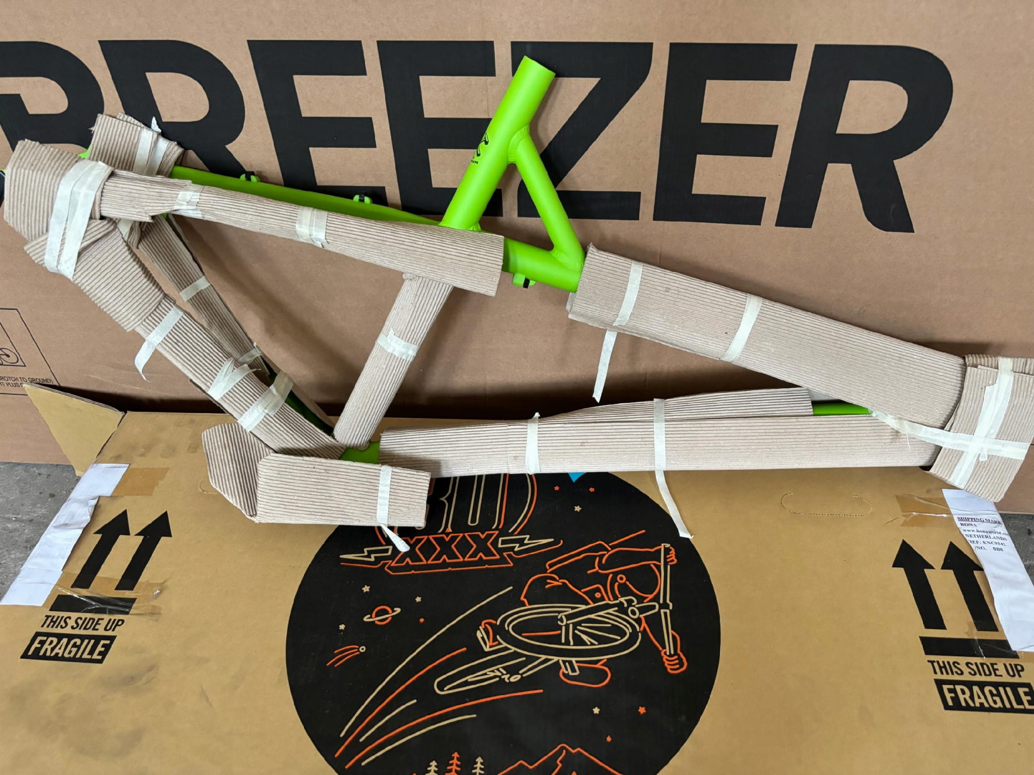 - Fabrycznie nowa rama – precyzyjnie wykonana z lekkiego aluminium Kona Race Light 6061 (butted), z wewnętrznym prowadzeniem przewodów pod dropper post;