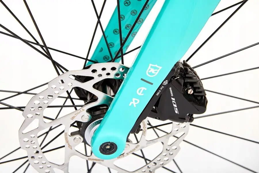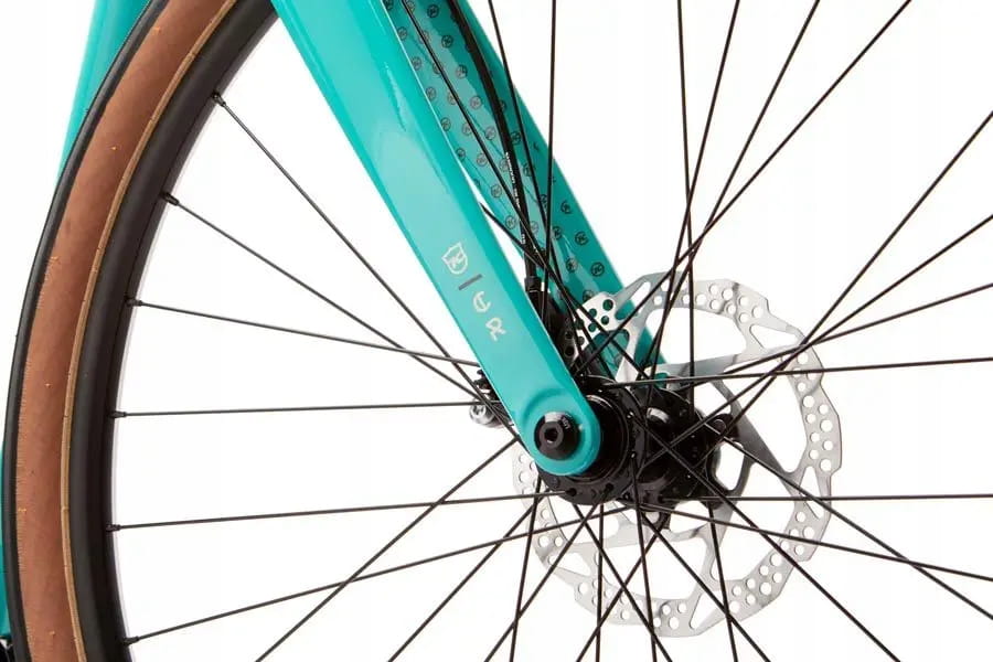 - Widelec: lekki karbonowy z mocowaniami Flat Mount (hamulce tarczowe) – znacznie obniża wagę i pozwala na komfortową jazdę