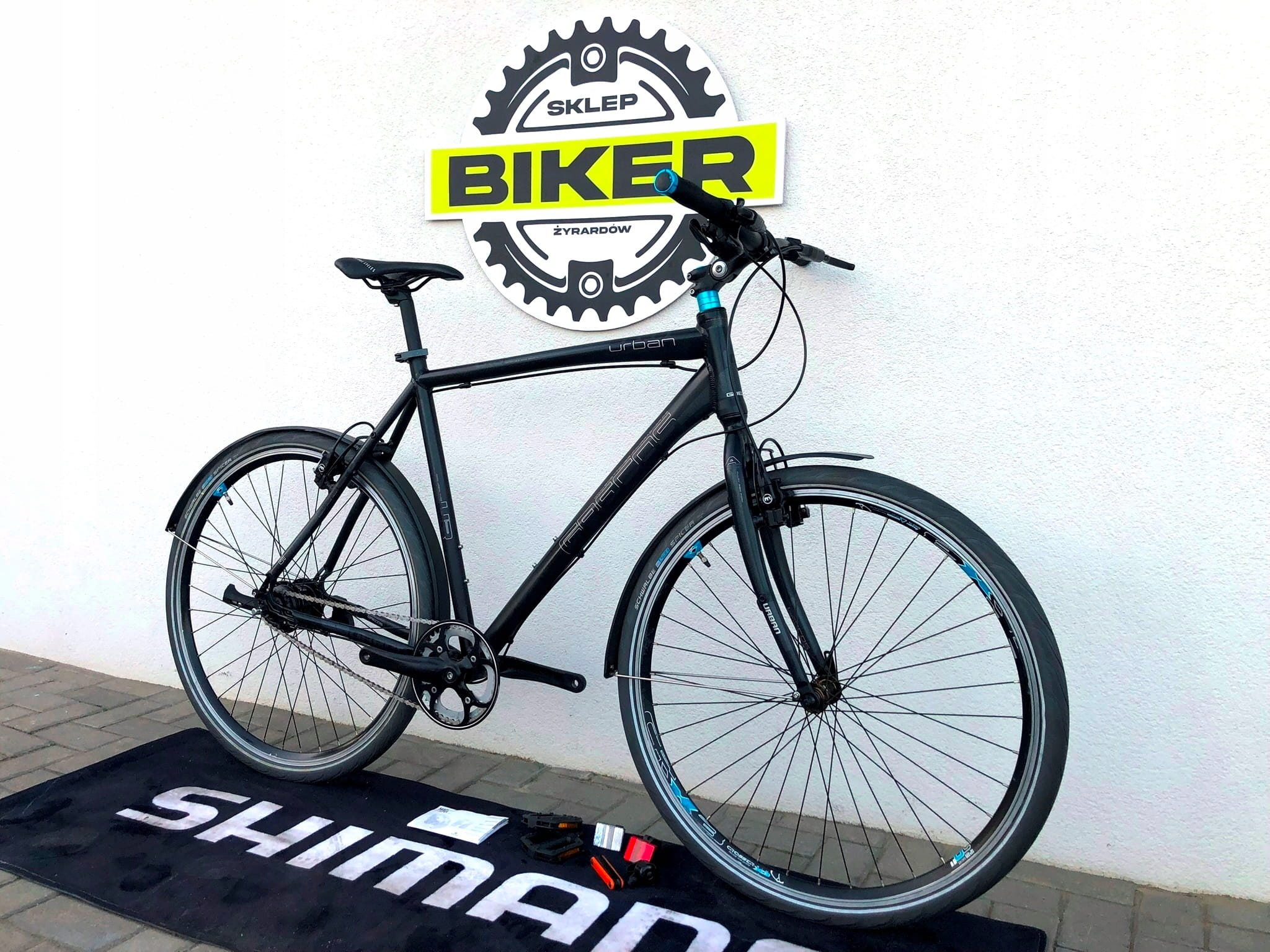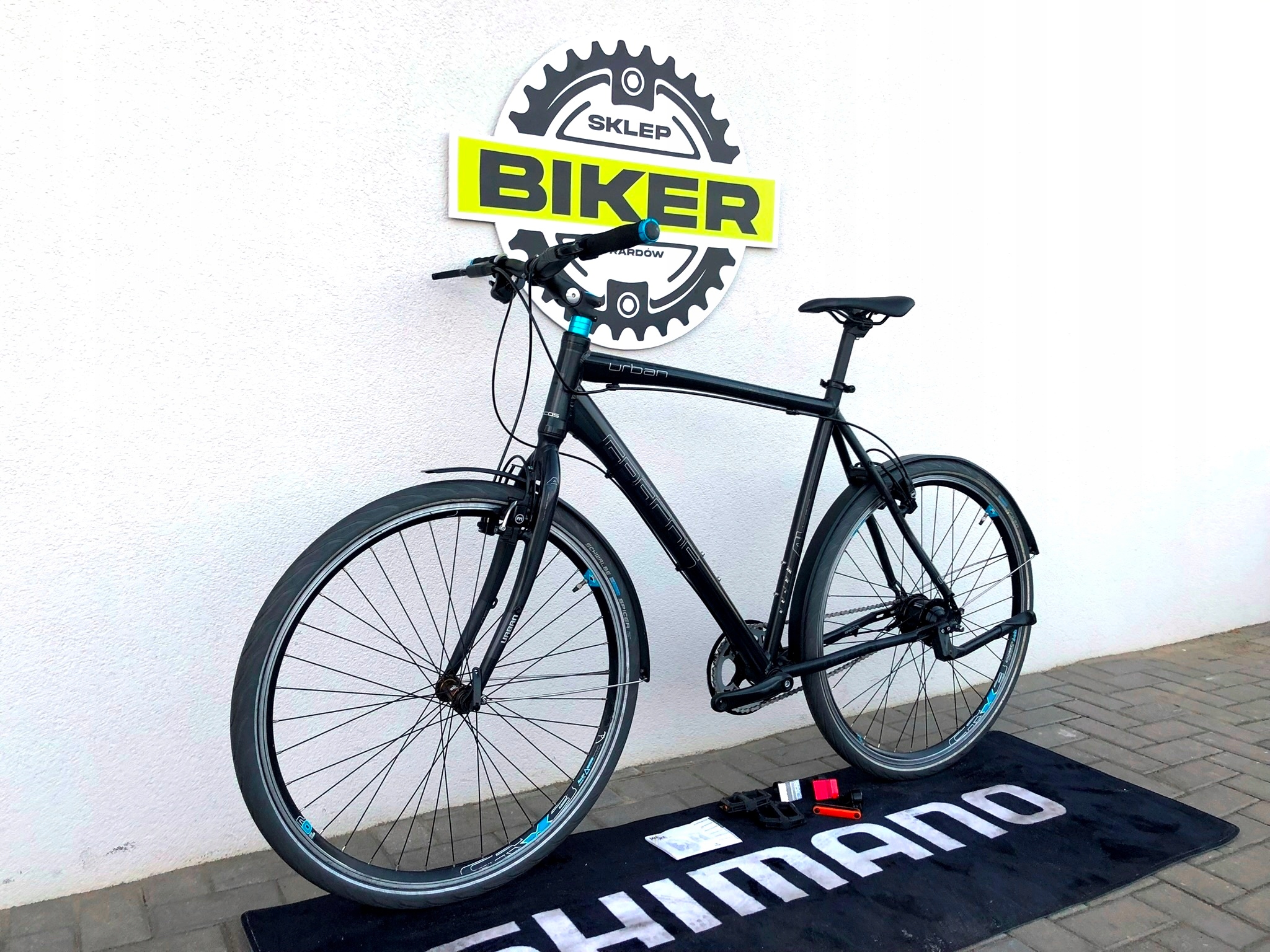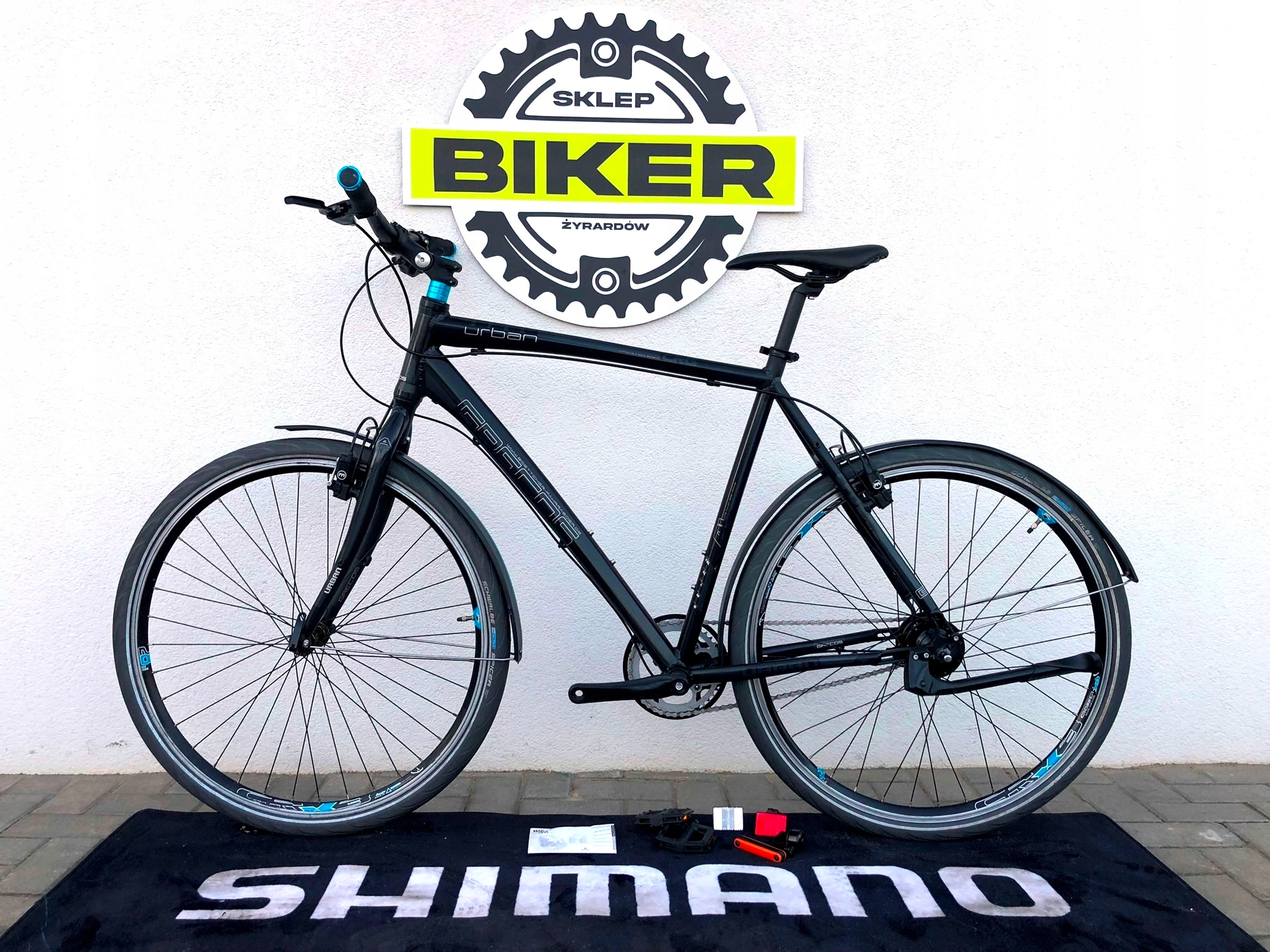 - Napęd Shimano – precyzyjna 8‑biegowe przerzutka, która ułatwiaja pokonywanie podjazdów i szybką jazdę po mieście.