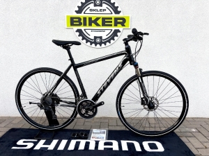 Wszechstronny rower crossowy z lekką i sztywną aluminiową ramą o komfortowej geometrii. Ma amortyzator SR Suntour NRX z regulacjami oraz blokadą skoku, napęd Shimano DEORE 3x10, koła 700c, można do niego założyć błotniki lub bagażnik.