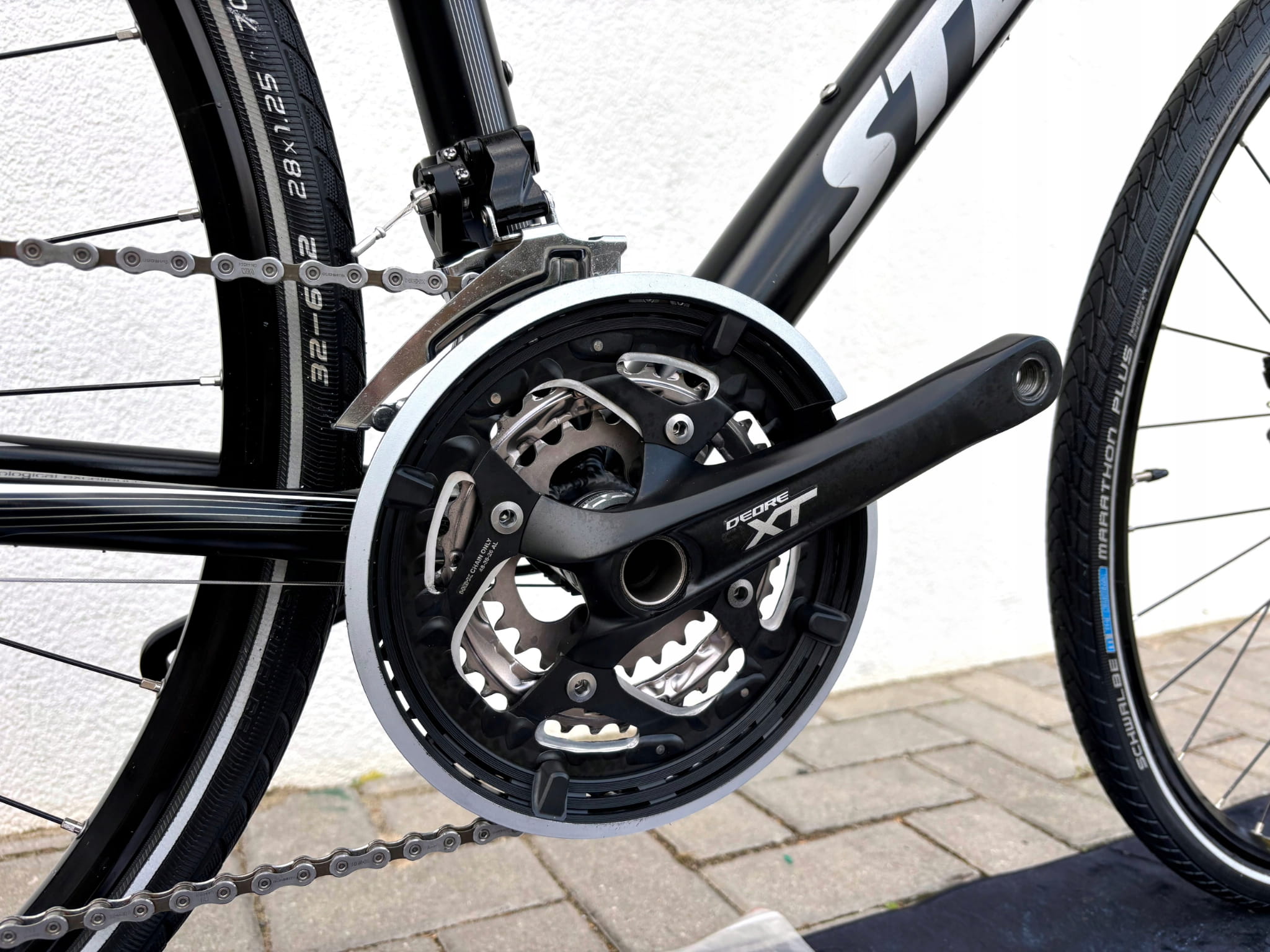 - Opony: Schwalbe Marathon Plus 700x32c - uniwersalne terenowo‑miejsko‑trekkingowe, zapewniające dobrą przyczepność i komfort