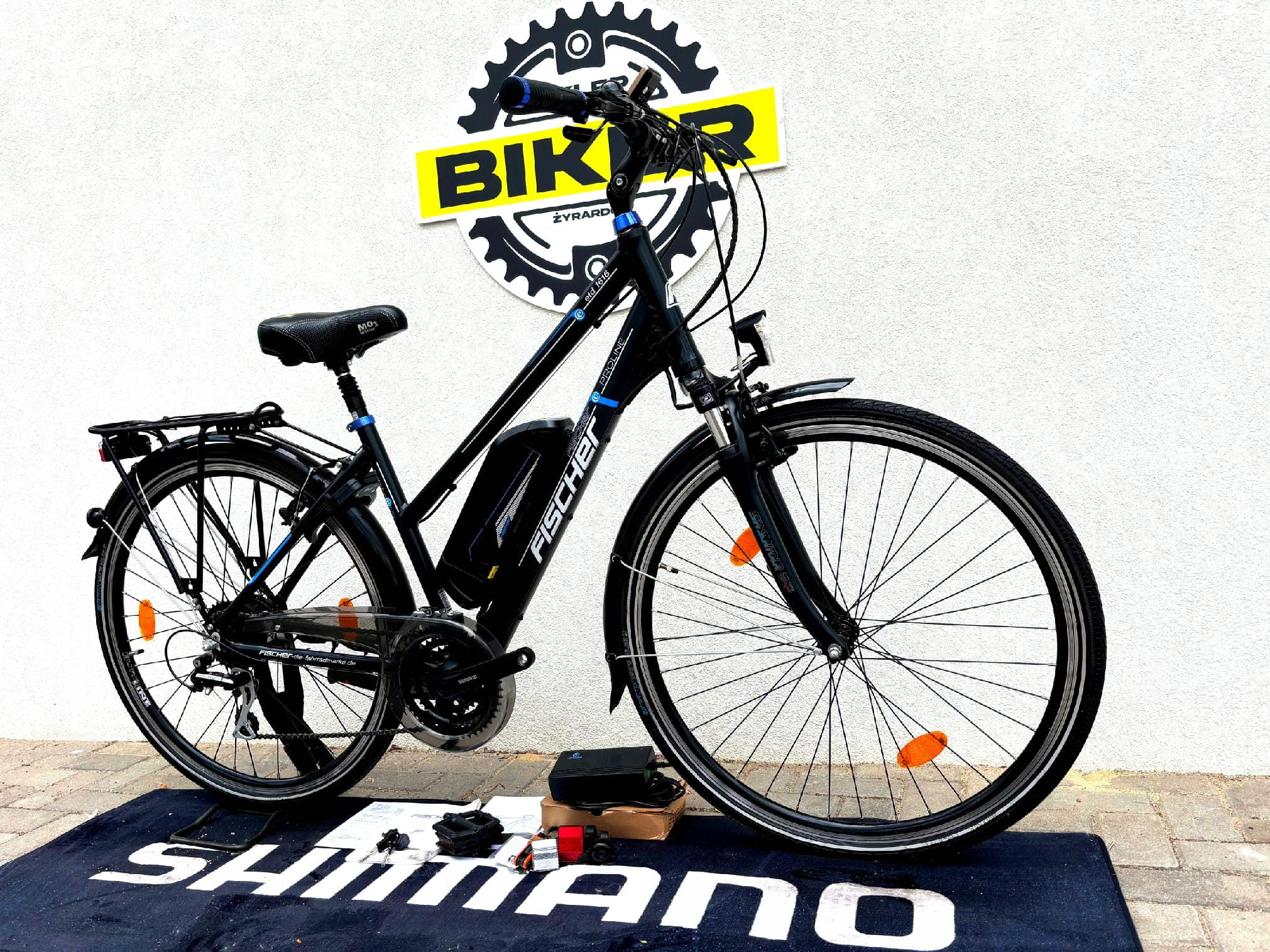 - W zestawie klucze do baterii, klucze do podkowy/zapięcia na tylne koło, ładowarka, klucze serwisowe oraz dokumentacja.
