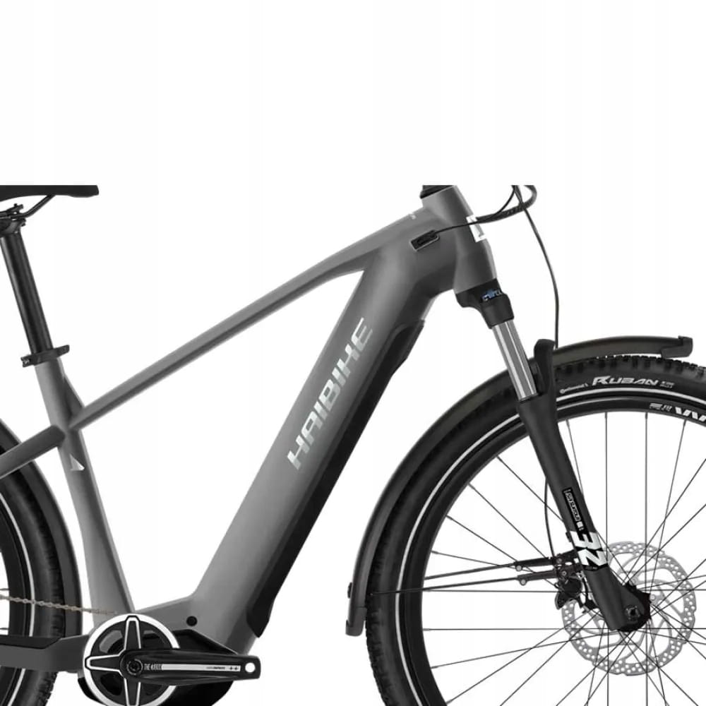 Rower elektryczny Haibike Trekking 4 High ma klasyczną geometrię przywodzącą na myśl tradycyjne jednoślady. Jego rama wykonana jest z aluminium, co zapewnia wytrzymałość na uszkodzenia mechaniczne oraz trwałość, a dodatkowo czyni e-bike lekkim. Aby przemierzanie wyboistych tras było bardziej komfortowo producent wzbogacił rower elektryczny Haibike Trekking 4 High o amortyzator o skoku 100 mm.