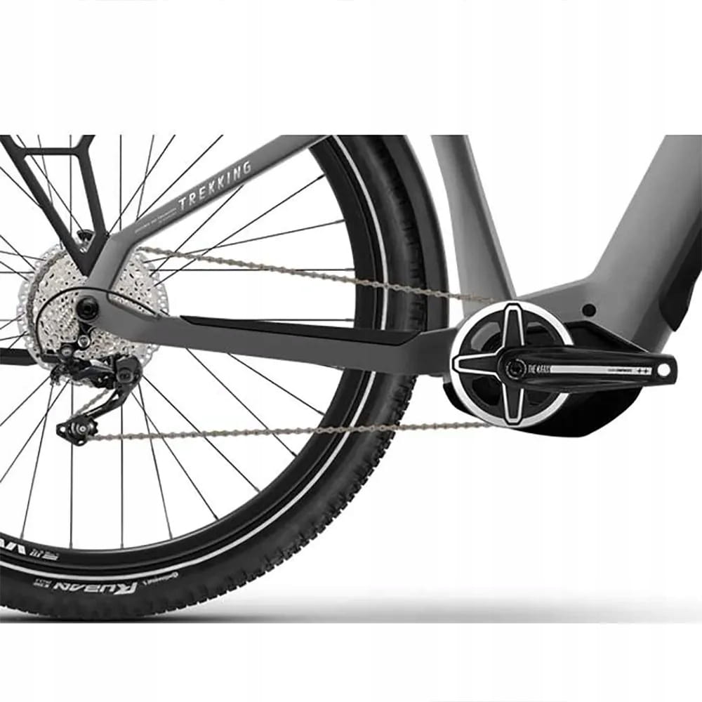 Rower elektryczny Haibike Trekking 4 High ma napęd tradycyjny Shimano CUES. Ponadto dla bezpieczeństwa kolarza e-bike korzysta z tarczowych hamulców hydraulicznych Shimano MT200 – mocnych i responsywnych. Aby użytkowanie Haibike Trekking 4 High było jak najprzyjemniejsze, producent w komplecie z e-bikiem dołącza bagażnik, błotniki i lampki przednie oraz tylne, a także stopkę rowerową.