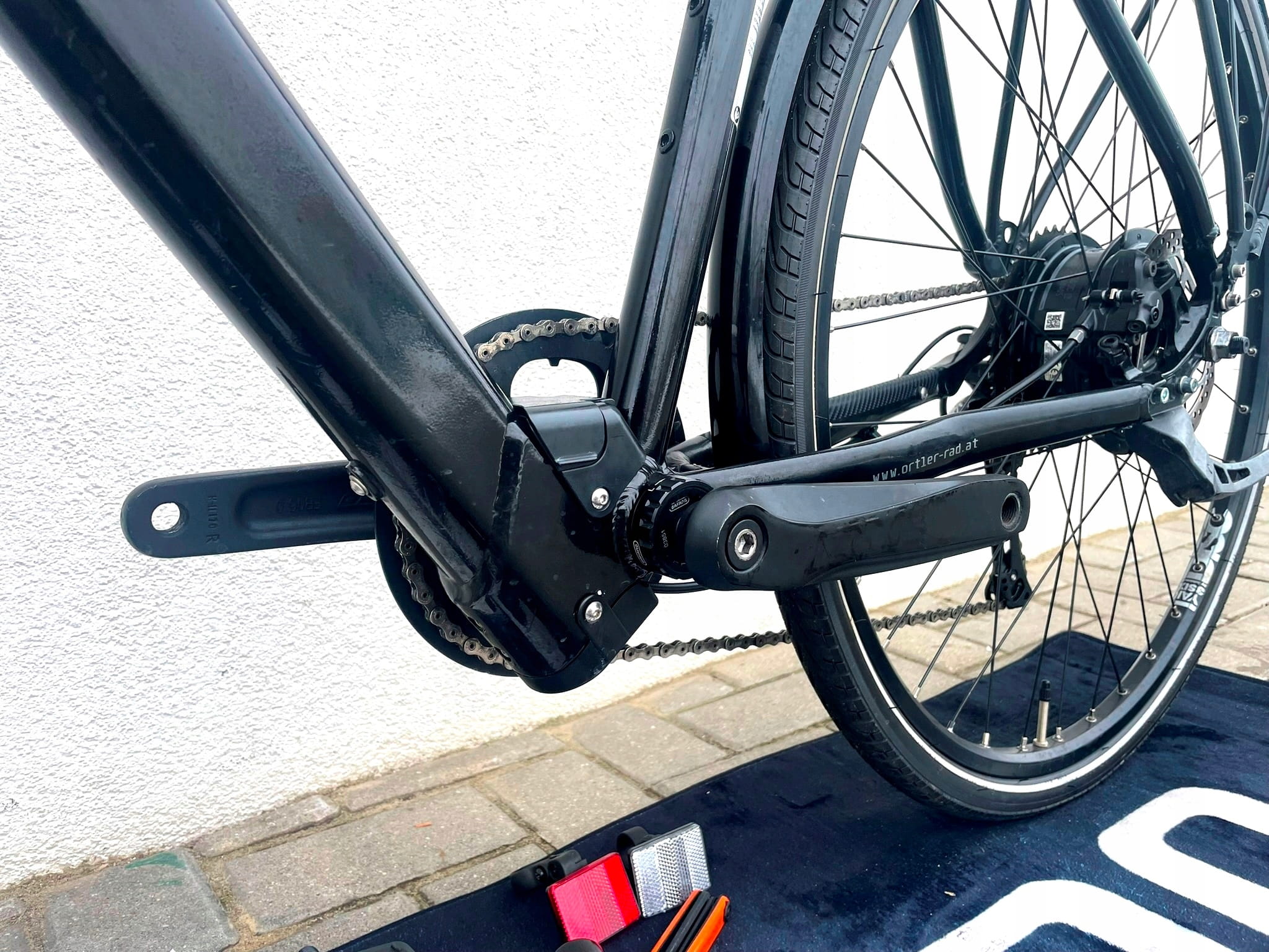 - Oświetlenie LED: zasilane z baterii E-bike