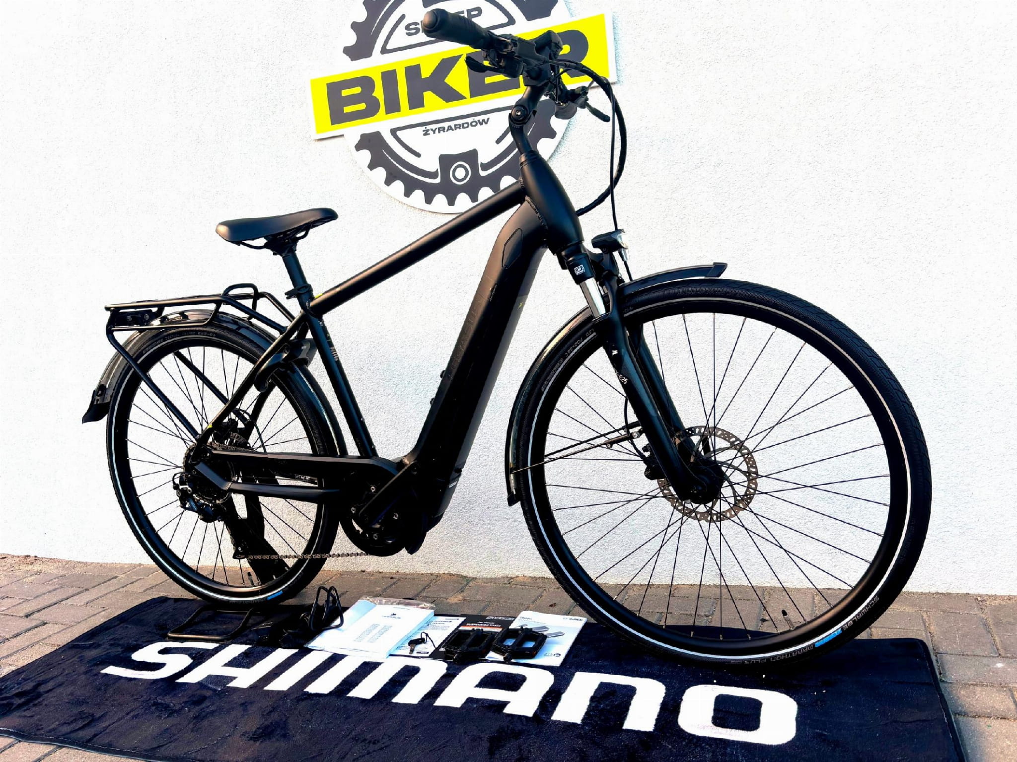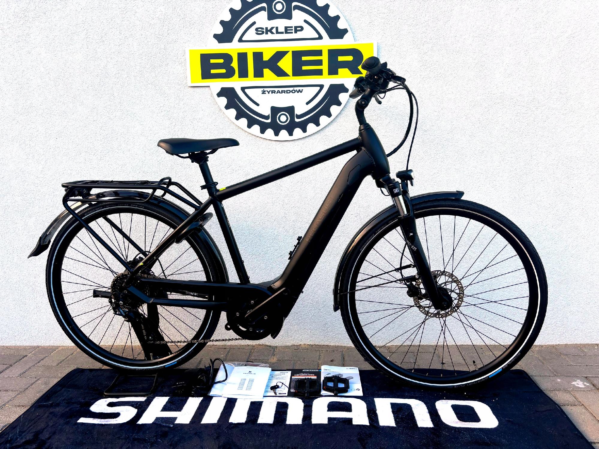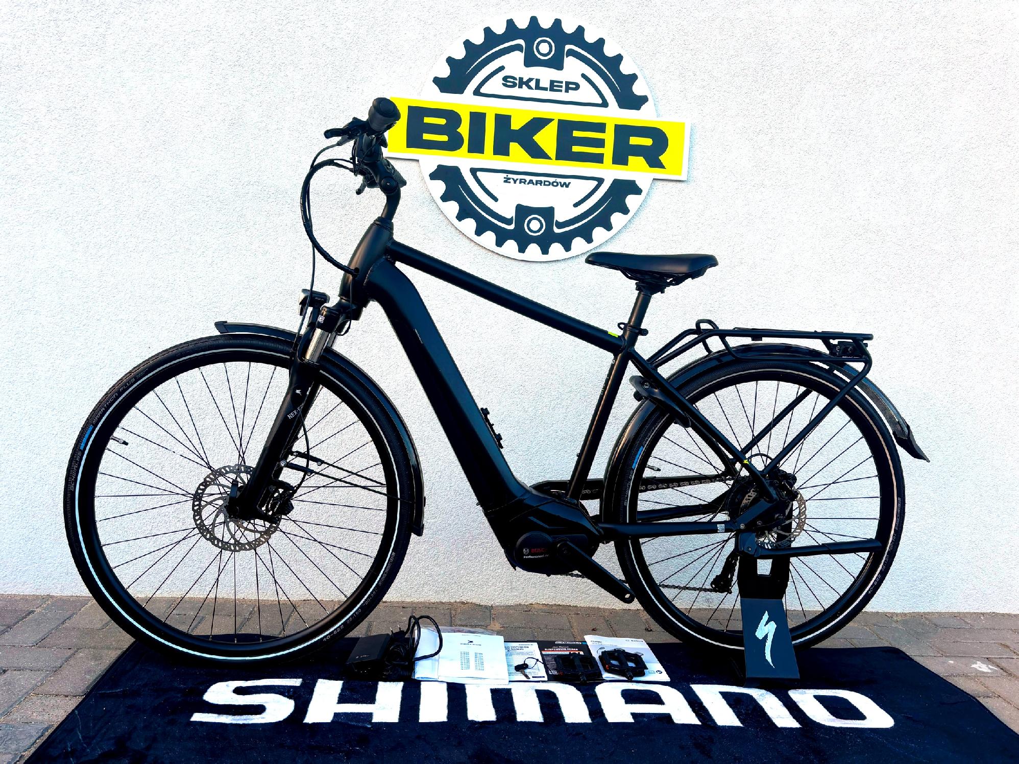 - W zestawie - dokumentacja, pedały, ładowarka, kluczyki do baterii oraz zapięcia, akcesoria i narzędzia serwisowe.