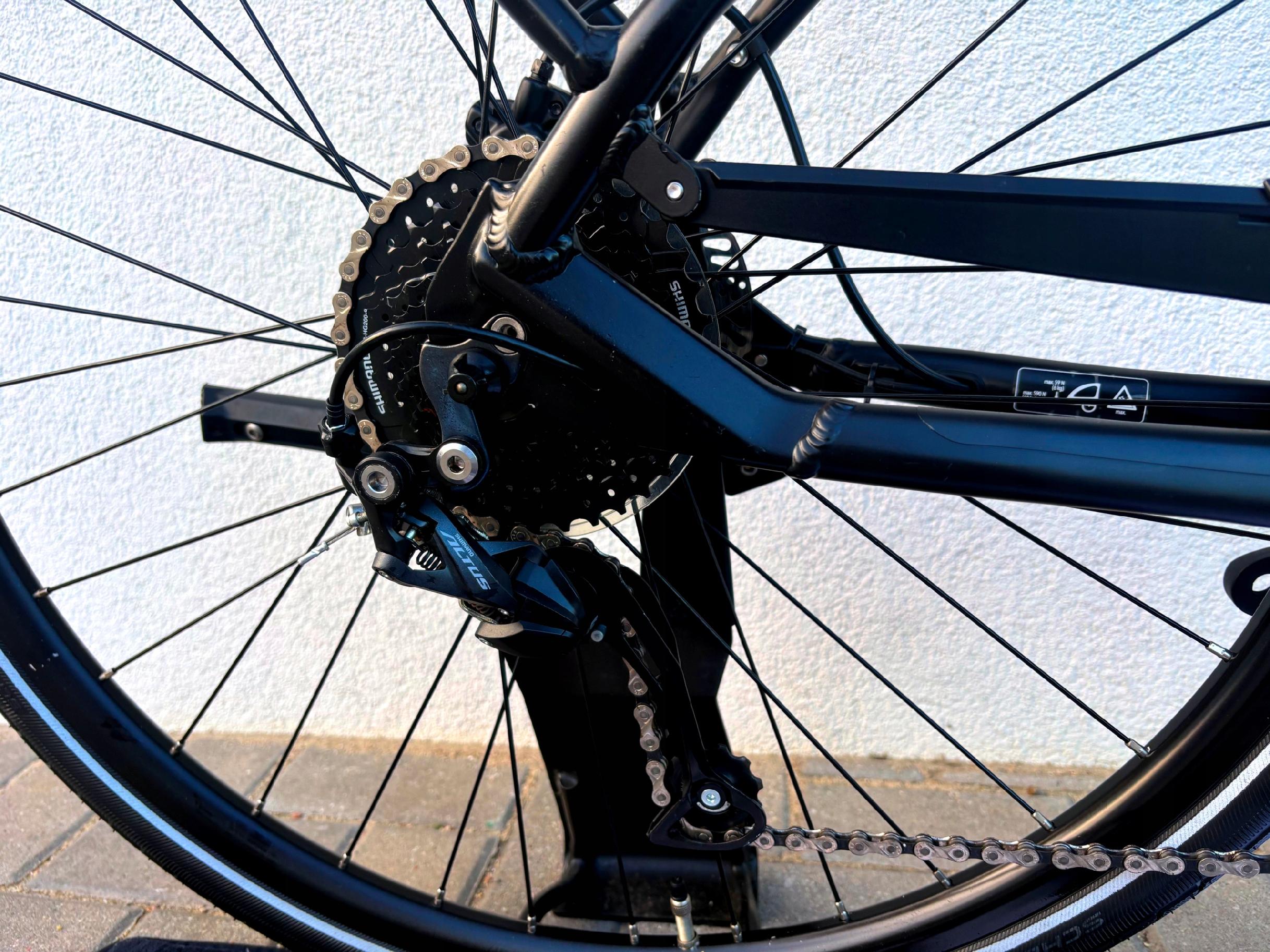 - Koła 28" z oponami Schwalbe – doskonała przyczepność i bezpieczeństwo, odporne na przebicia.