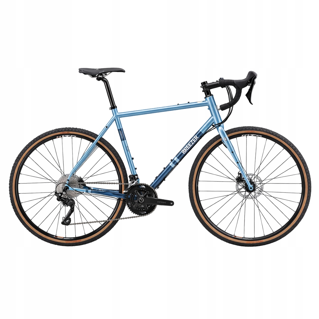 - Rama: stalowa Breezer butted-chromoly, gravel / adventure, główka 44 mm, suport gwintowany (BSA), 700c, oś tylna 142 × 12 mm