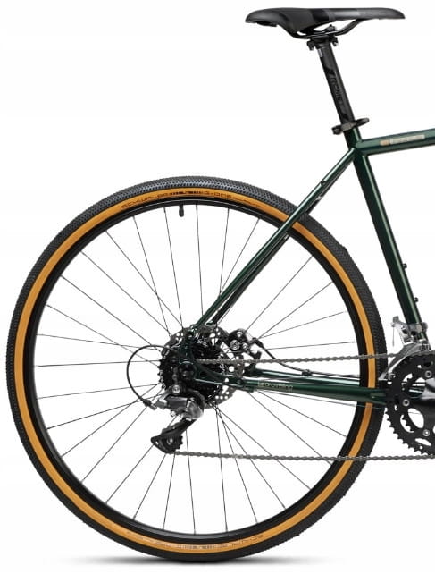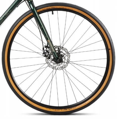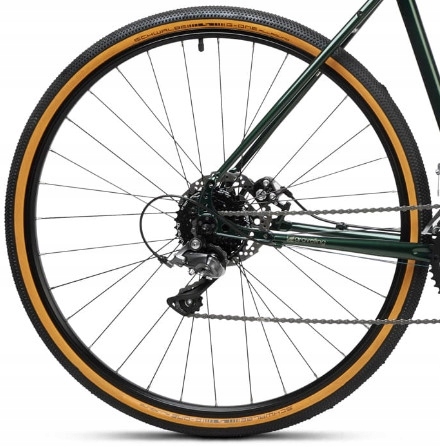 - Koła 28″ (700c) z oponami typu gravel – dobra równowaga między szybkością a przyczepnością.