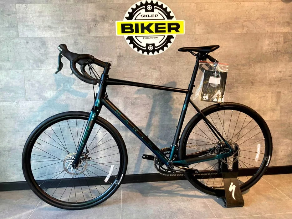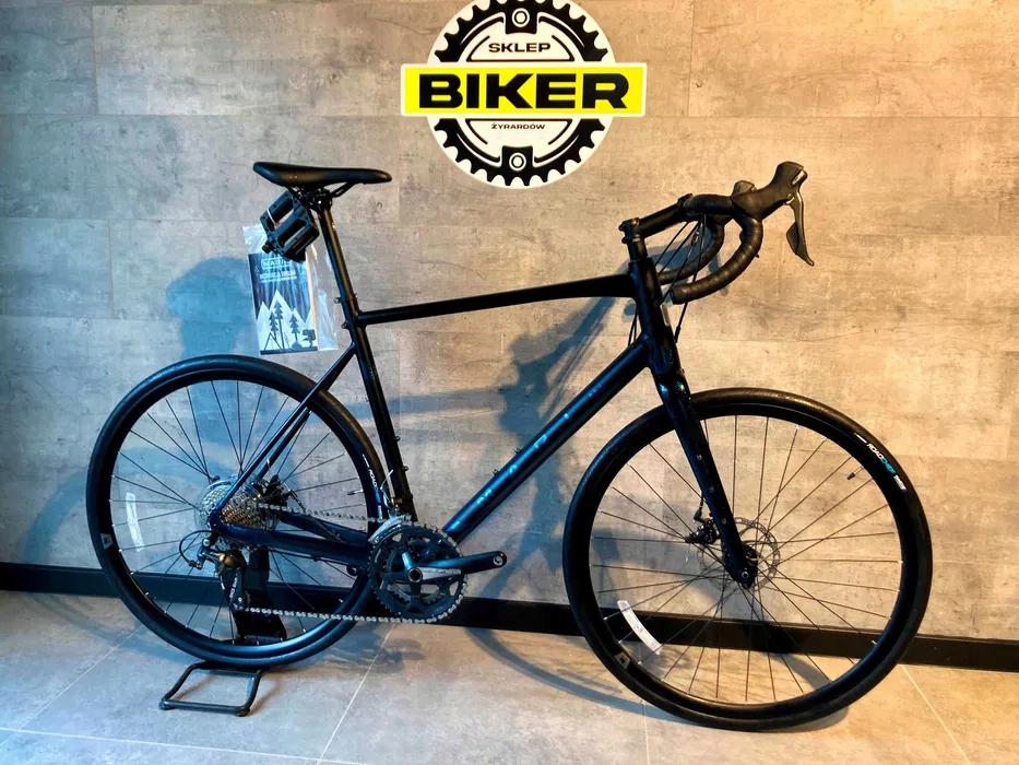 Rower został wyposażony w sprawdzony napęd Shimano Tiagra w konfiguracji 2x10, który zapewnia szeroki zakres przełożeń oraz płynną i precyzyjną zmianę biegów. To rozwiązanie doskonale sprawdza się zarówno na asfalcie, jak i na szutrach czy bardziej wymagających odcinkach, szczególnie podczas dłuższych tras.