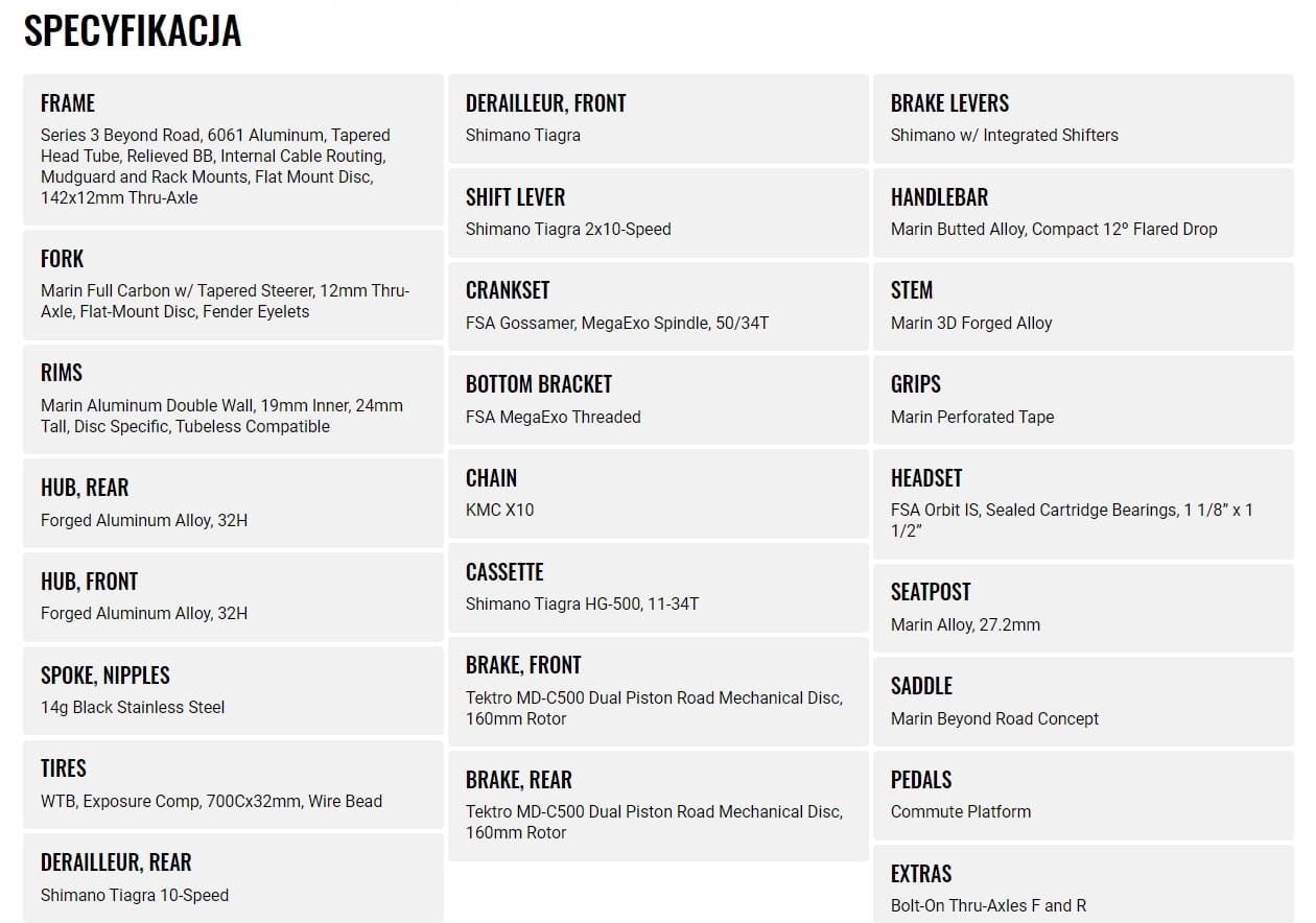 Specyfikacja Rower Marin Gestalt 2: