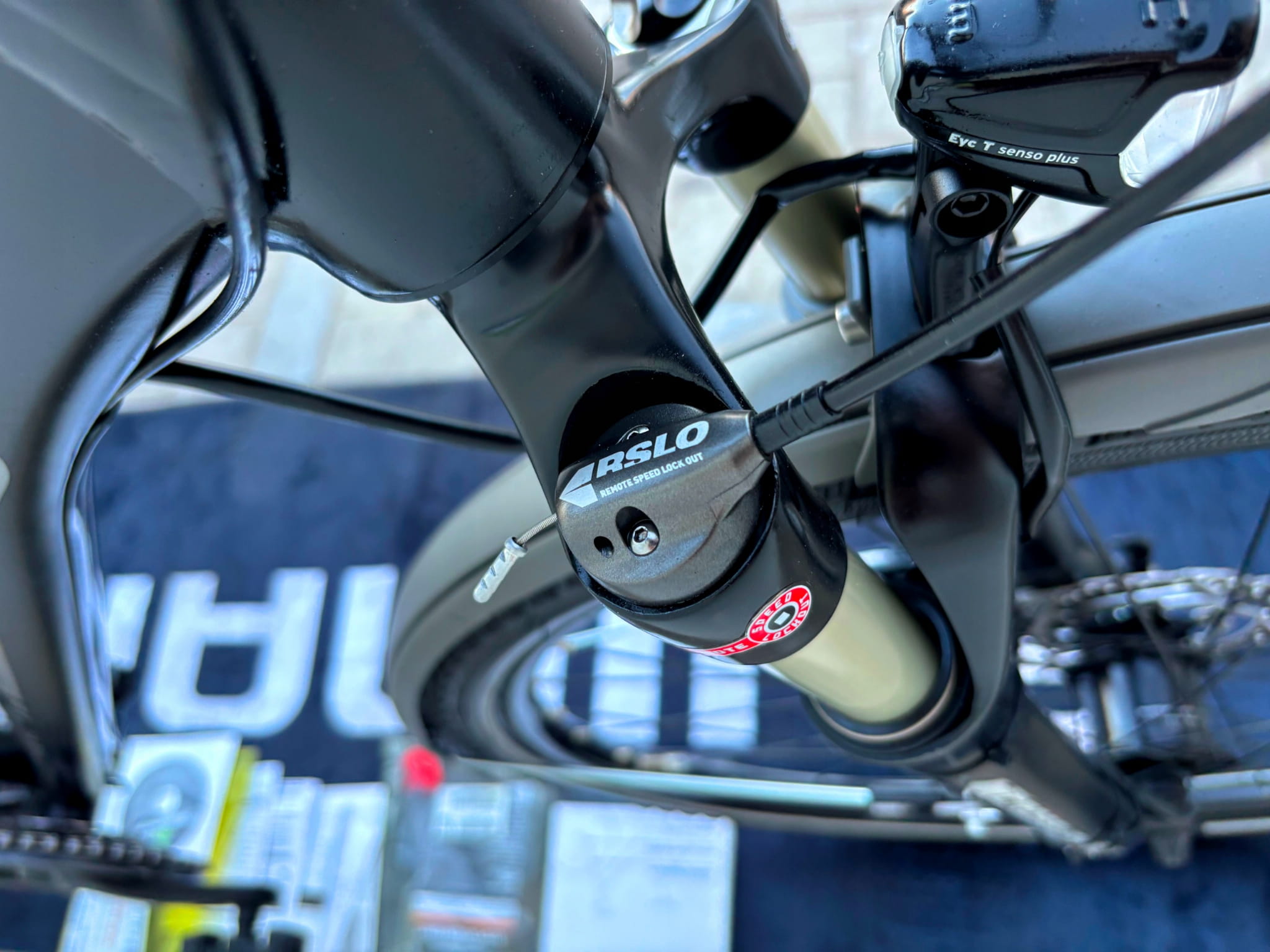 - powietrzny amortyzator z blokadą z manetki na kierownicy