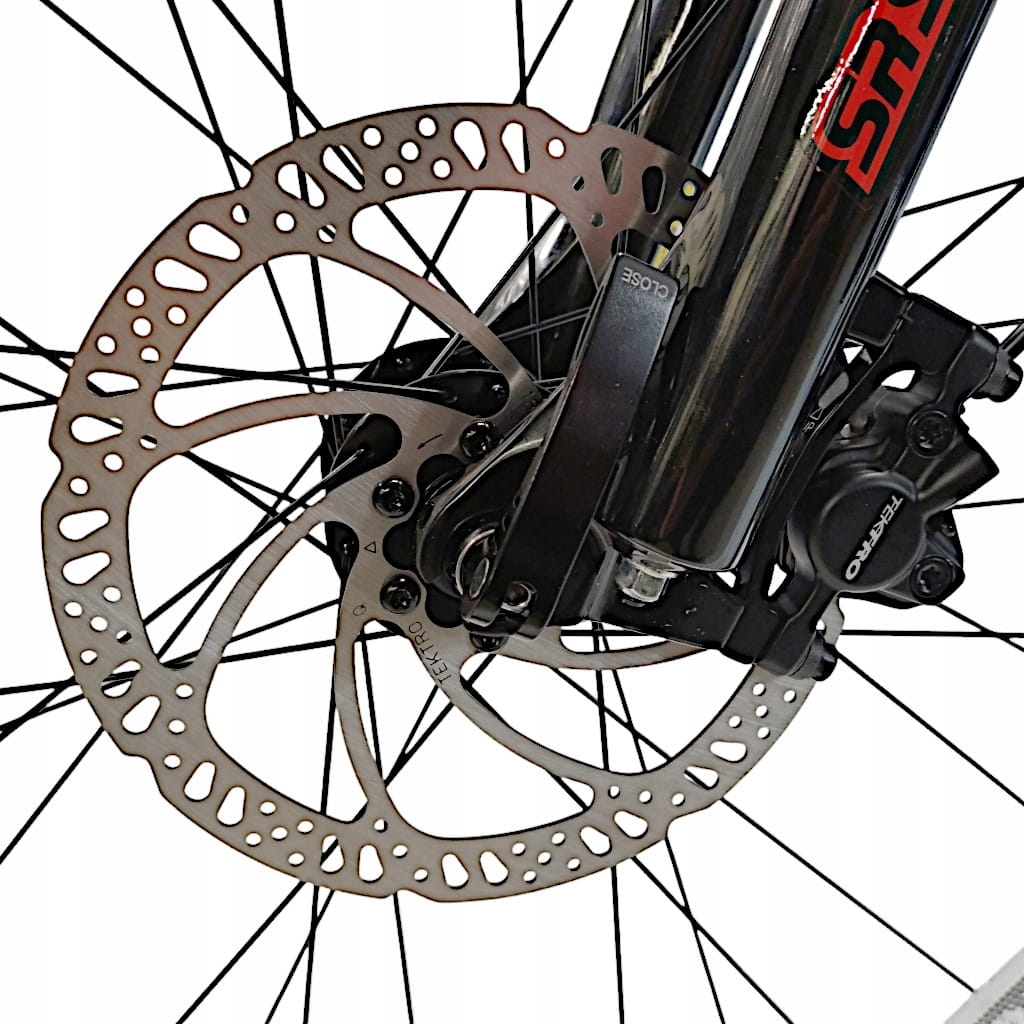 - Hamulce: Hydrauliczne hamulce tarczowe Tektro HD-M275, które gwarantują skuteczne i bezpieczne hamowanie.