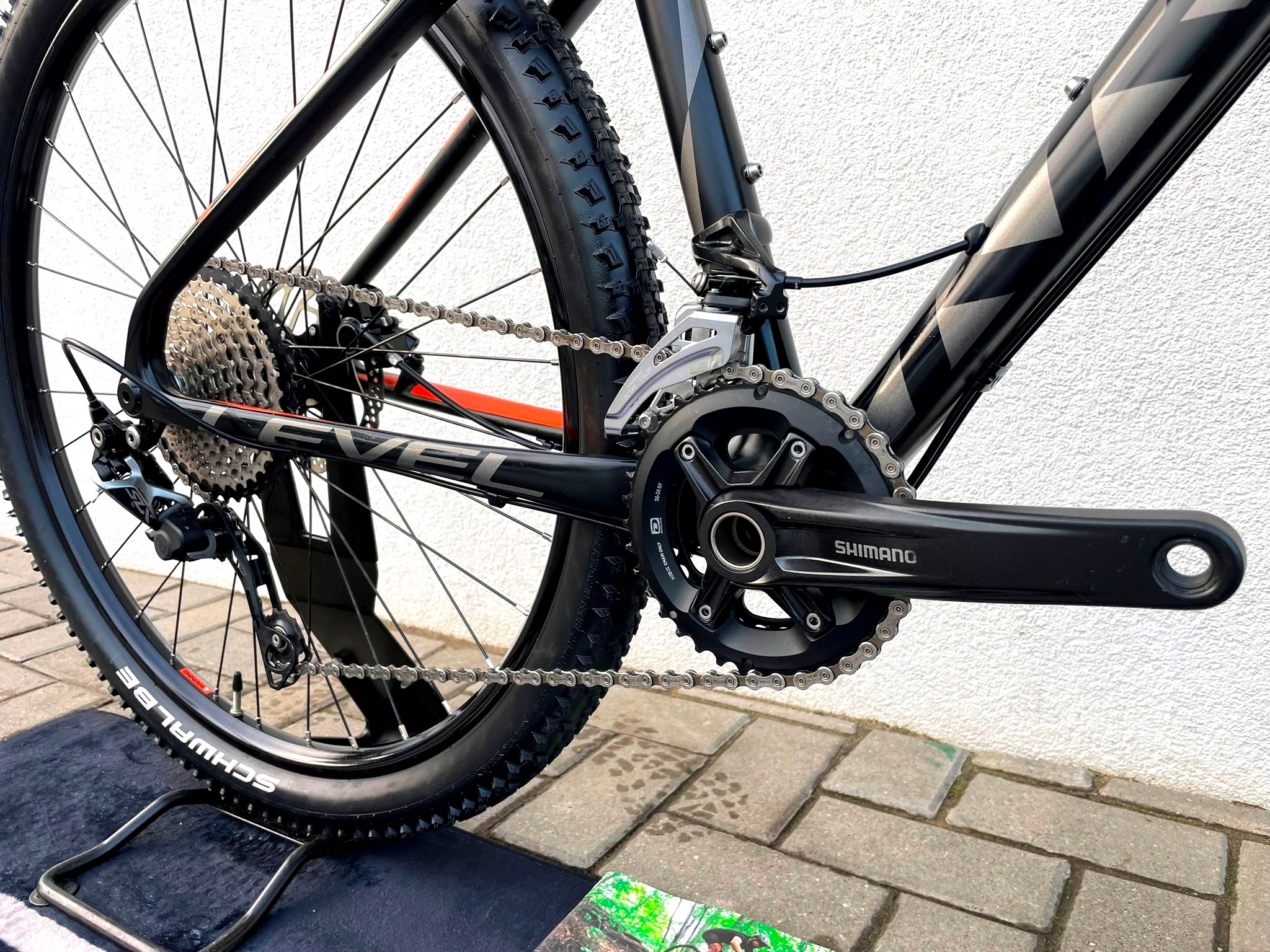 - Korba: Shimano FC‑MT500 (36/26T)