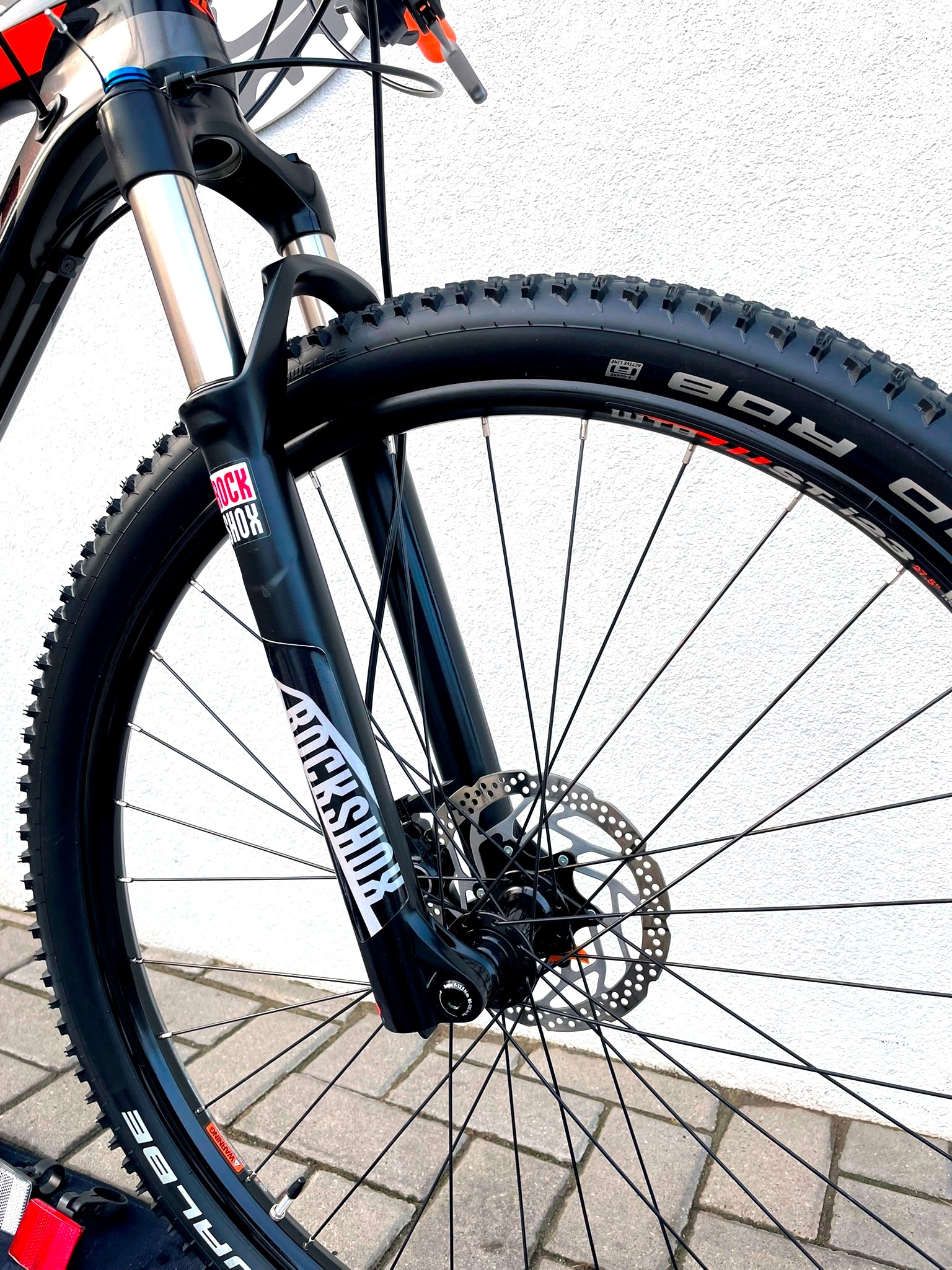 - Widelec przedni: RockShox Recon TK, skok 100 mm, blokada skoku na manetce
