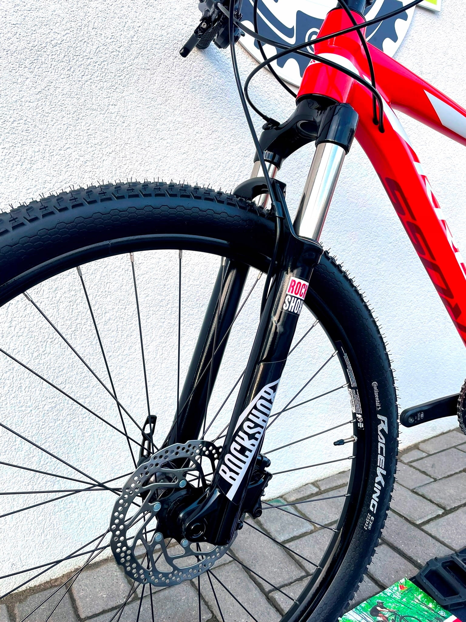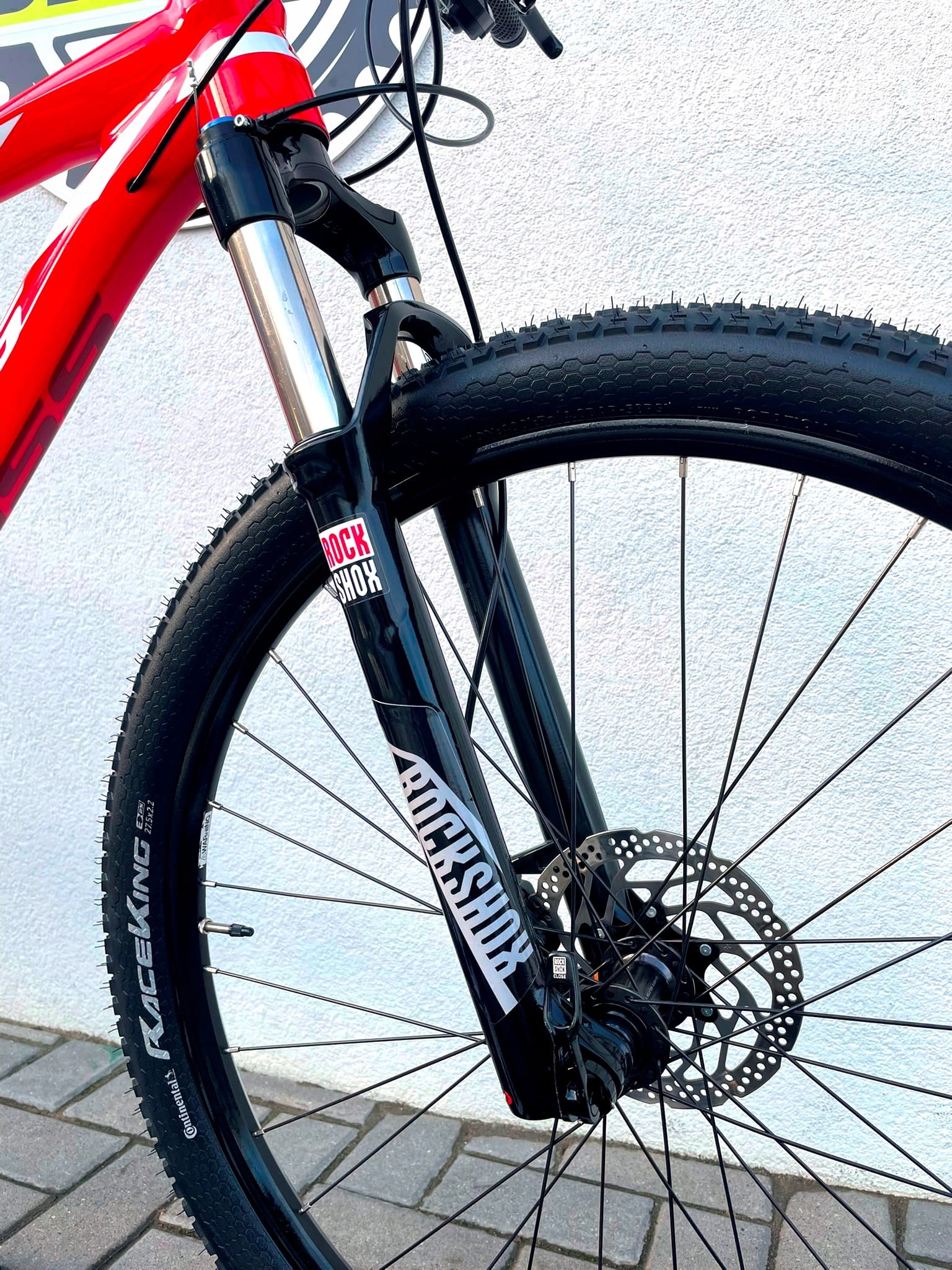 Rower posiada sztywne osie i hamulce w standardzie post mount – za hamowanie odpowiadają hydrauliczne tarczówki Shimano BR-MT500. Koła 27,5 cala na obręczach WTB, przystosowane do systemu tubeless, w połączeniu z oponami Continental RaceKing 27,5x2,2” zapewniają pewną przyczepność i komfort w terenie.