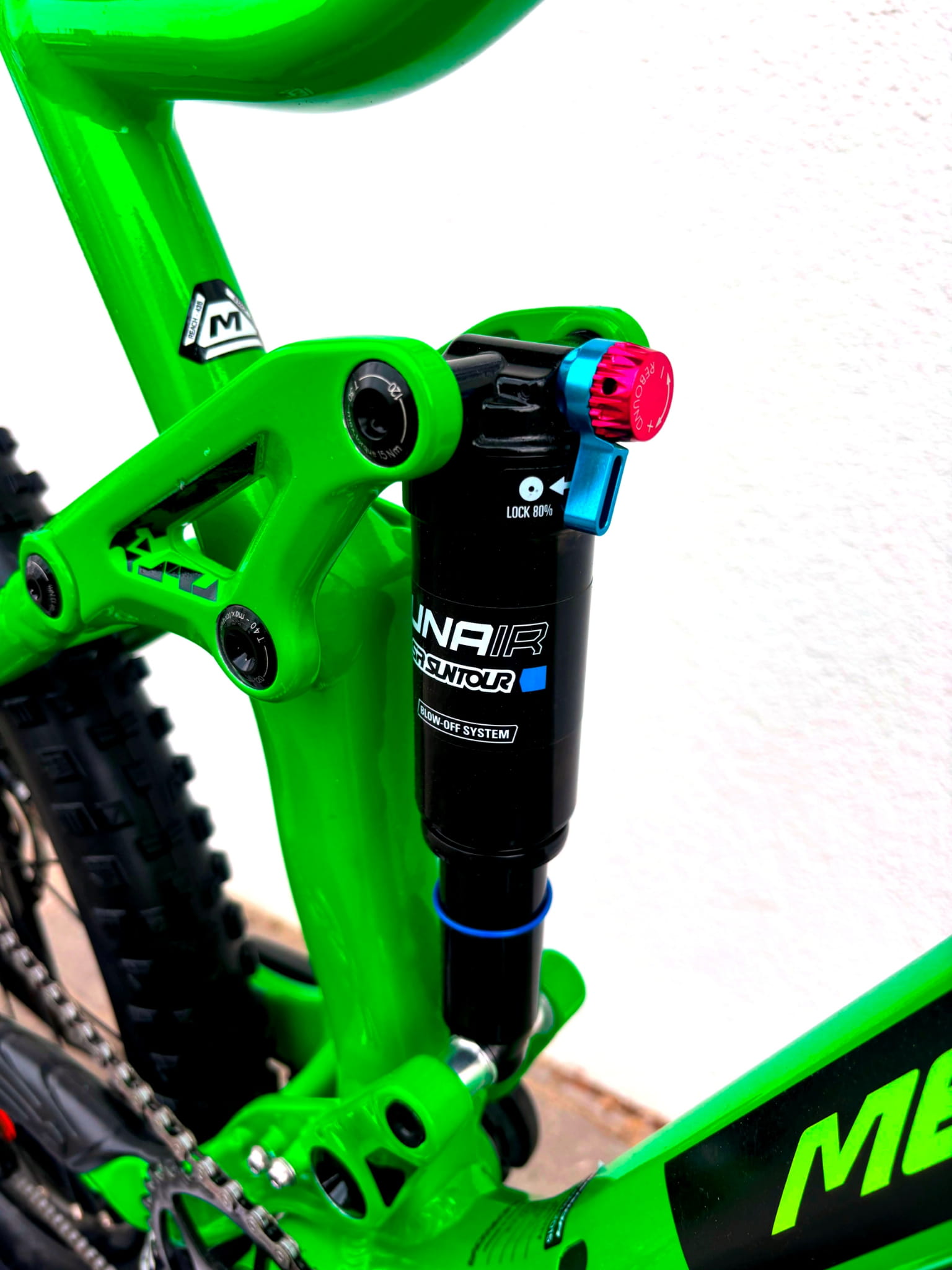 Amortyzator Suntour Unair TR LOR8: Wydajny tylny trójkąt z możliwością blokady.
