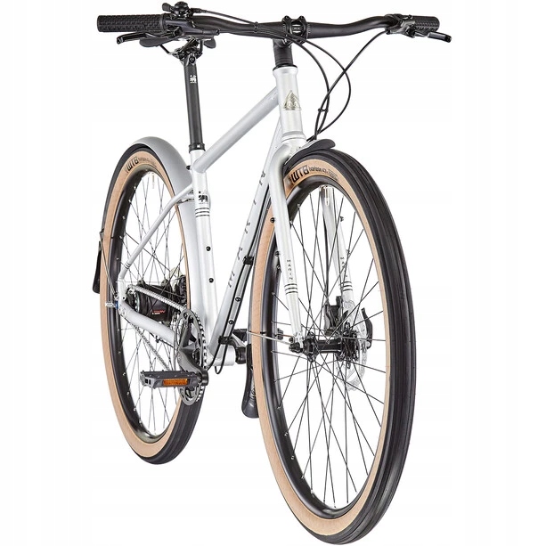 - Solidna stalowa rama CrMo – wytrzymała, odporna na trudy miejskiej jazdy, a przy tym dobrze tłumiąca drgania.