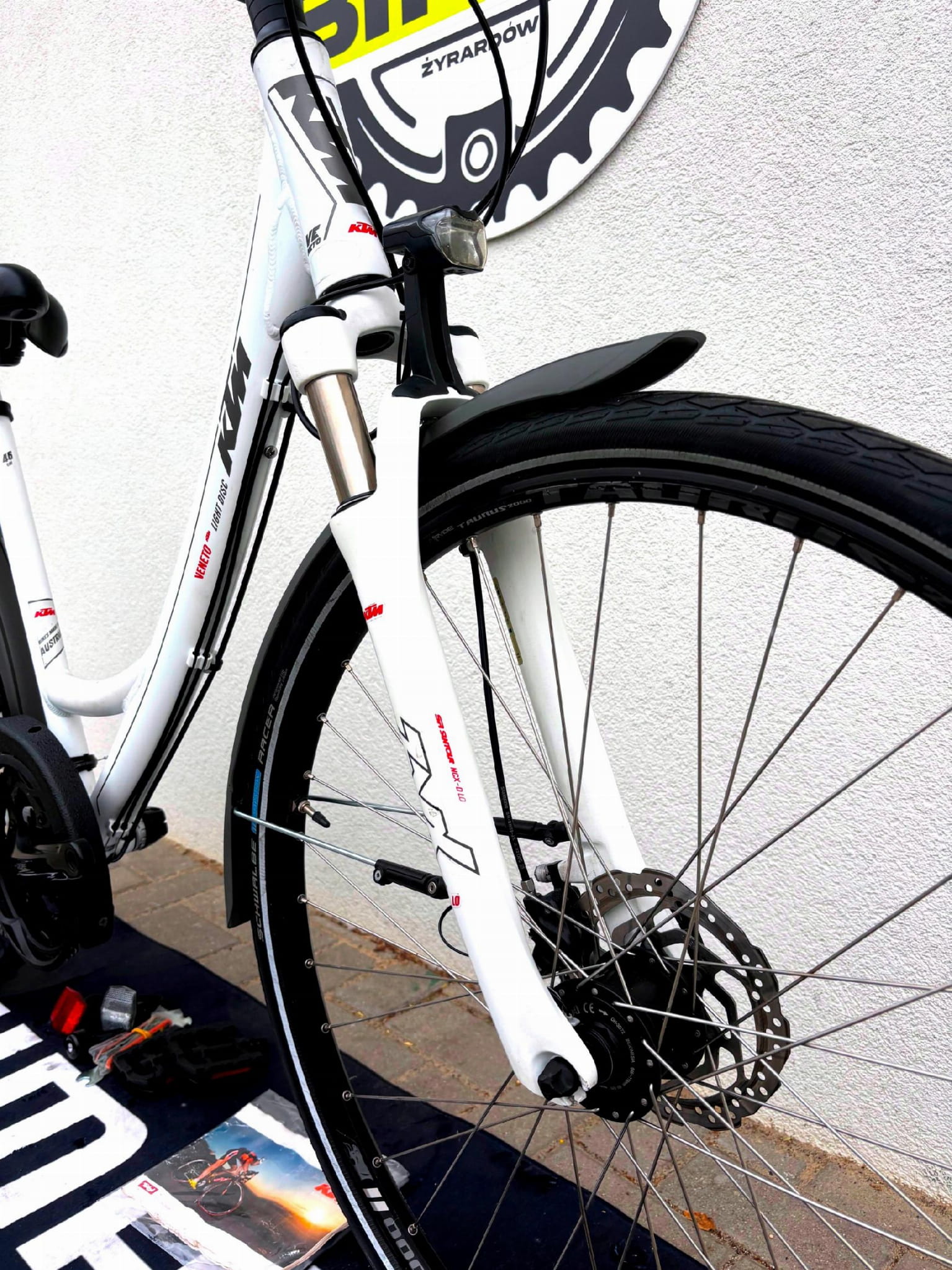 - Oświetlenie: zasilane z prądnicy w piaście (dynamo), przód i tył