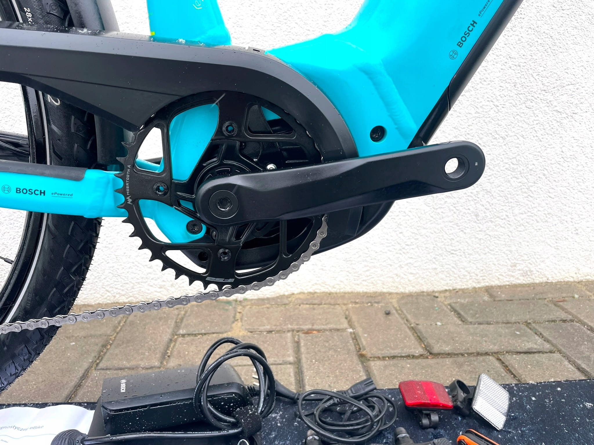- W zestawie: pedały, kompletna dokumentacja, oryginalne instrukcje, ładowarka, kluczyki do baterii, akcesoria.