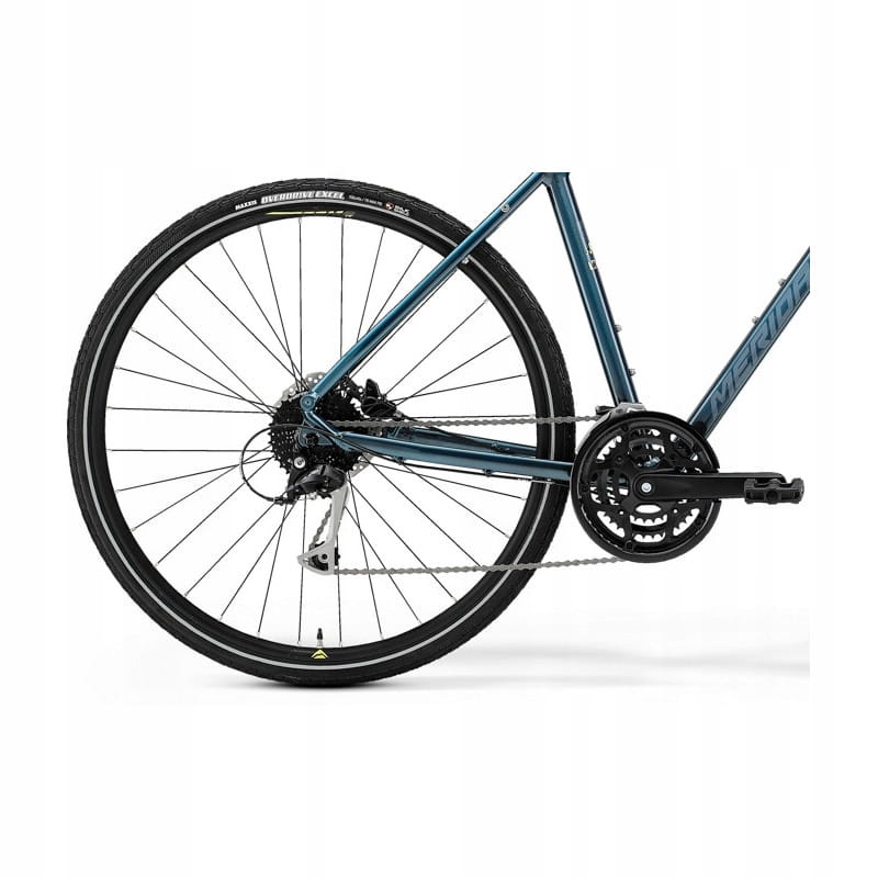Crossway 100 ma całkowicie nową ramę TFS III z lżejszą konstrukcją, mocno opadającą górną rurą dla łatwego wsiadania na rower i zsiadania z niego, a także nowym wewnętrznym prowadzeniem przewodów dla czystego wyglądu i ochrony przed wilgocią i brudem. Rama z podwójnie cieniowanego i technoformowanego aluminium ma lekkie i sztywne rury, a także komfortową geometrię. Rama jest przygotowana do założenia błotników i bagażnika, by Crossway służył Ci jako rower wyprawowy albo do dojazdów do pracy. Odpowiedni zakres przełożeń zapewni Ci sprawdzony napęd Shimano 3 x 9, a bezpieczeństwo w różnych warunkach pogodowych zwiększą mocne hydrauliczne hamulce tarczowe Tektro M275. Komfort na trasie poprawi amortyzowany widelec SR Suntour NEX HLO 63 mm, amortyzowana sztyca Merida TK i regulowany mostek Merida Comp TK, zwiększą go także wytrzymałe opony Maxxis Overdrive Excel z niskimi oporami toczenia oraz paskiem odblaskowym dla lepszej widoczności no drodze. Możesz polegać również na mocnych kołach Merida Comp TK oraz komponentach Merida. Crossway 100 komfortowo i szybko odkryje z Tobą nowe trasy i będzie wiernym kompanem na dobrze znanych odcinkach. Cała naprzód!