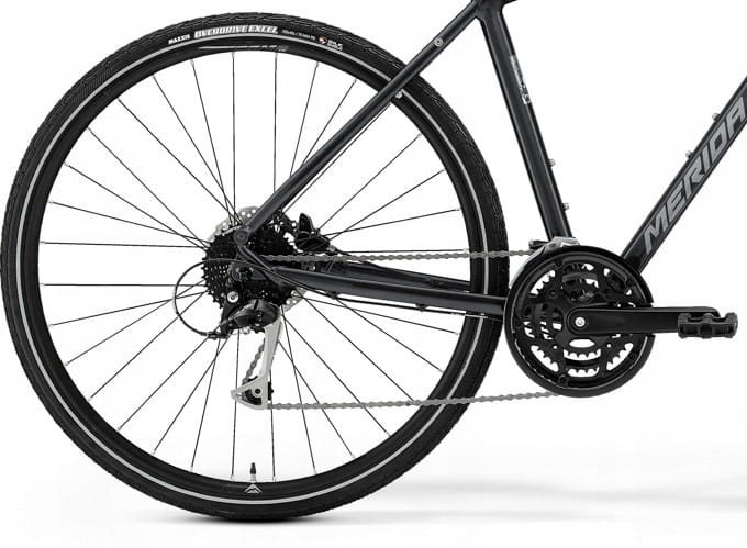 Od sezonu 2021 Crossway 40 ma całkowicie nową ramę TFS III z lżejszą konstrukcją, mocno opadającą górną rurą dla łatwego wsiadania na rower i zsiadania z niego, a także nowym wewnętrznym prowadzeniem przewodów dla czystego wyglądu i ochrony przed wilgocią i brudem. Rama z podwójnie cieniowanego i technoformowanego aluminium ma lekkie i sztywne rury, a także komfortową geometrię. Rama jest przygotowana do założenia błotników i bagażnika, by Crossway służył Ci jako rower wyprawowy albo do dojazdów do pracy. Odpowiedni zakres przełożeń zapewni Ci sprawdzony napęd Shimano 3 x 9, a bezpieczeństwo w różnych warunkach pogodowych zwiększą mocne hydrauliczne hamulce tarczowe Shimano. Komfort na trasie poprawi amortyzowany widelec Suntour NEX HLO Coil 63 mm, amortyzowana sztyca Merida TK i regulowany mostek Merida TK, zwiększą go także wytrzymałe opony MERIDA K1171 z niskimi oporami toczenia. Możesz polegać również na mocnych kołach Merida CC oraz komponentach Merida. Crossway 40 komfortowo i szybko odkryje z Tobą nowe trasy i będzie wiernym kompanem na dobrze znanych odcinkach. Cała naprzód!