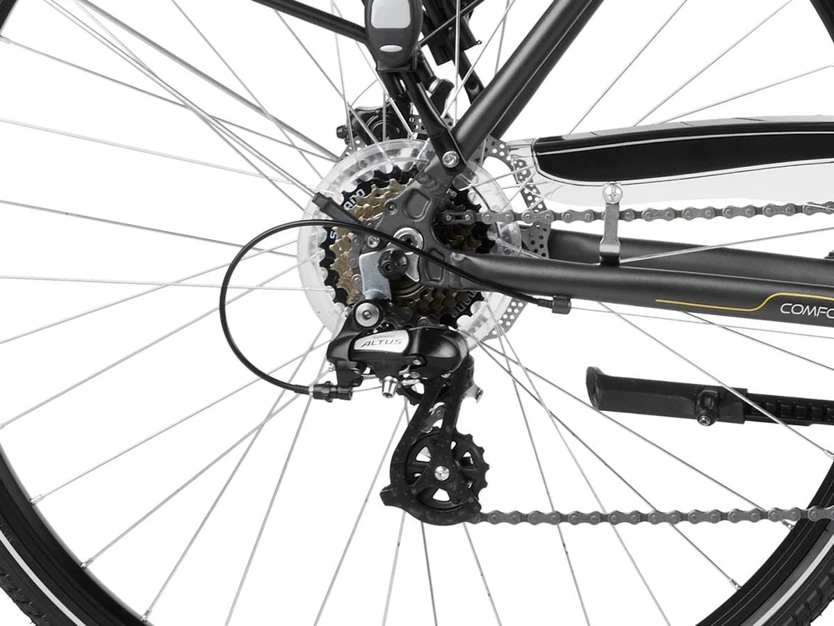 - Sprawdzony napęd Shimano – płynna zmiana biegów i szeroki zakres przełożeń
