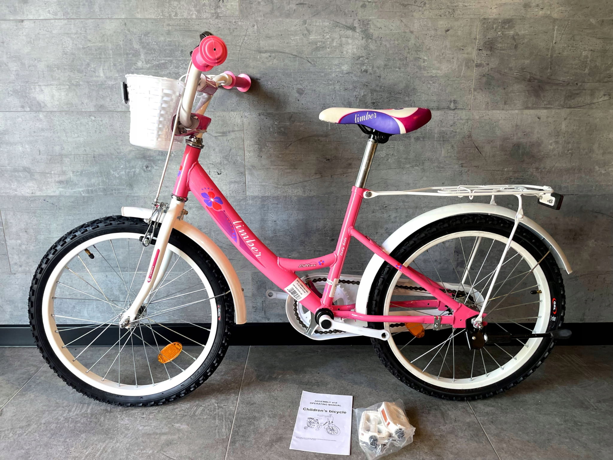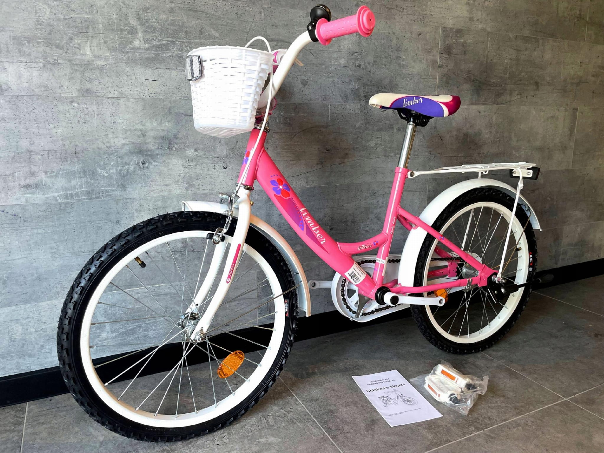 ŚLICZNY Rower dziecięcy * LIMBER 20 GIRL NEON * Koła 20 różowy +koszyk