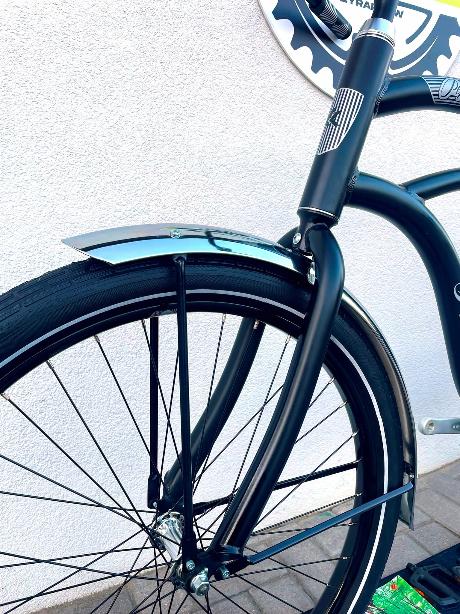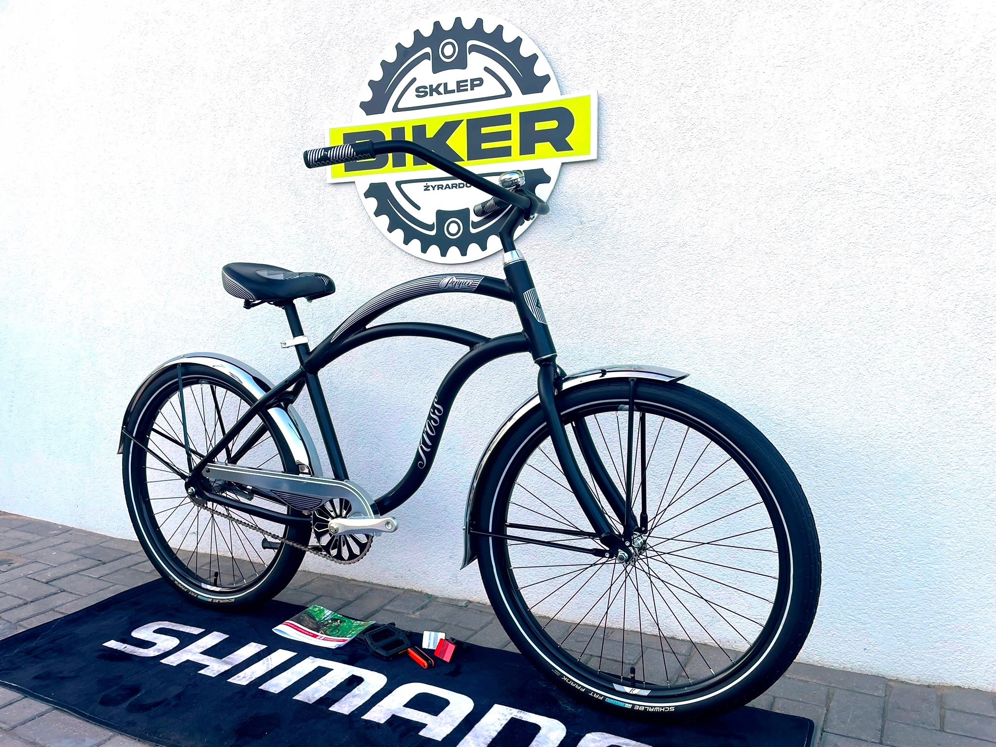 Aluminiowa rama jest lekka, a jednocześnie wytrzymała. Szerokie opony typu balloon (26 x 2,35") gwarantują świetną przyczepność i wysoki komfort jazdy nawet na nierównej nawierzchni. Układ hamulcowy to klasyczny hamulec nożny z tyłu (torpedo) – niezawodny do jazdy miejskiej. Wyjątkowy styl roweru podkreślają charakterystyczne detale, szerokie siodło, metalowe błotniki oraz solidna, gięta kierownica z szerokim rozstawem.