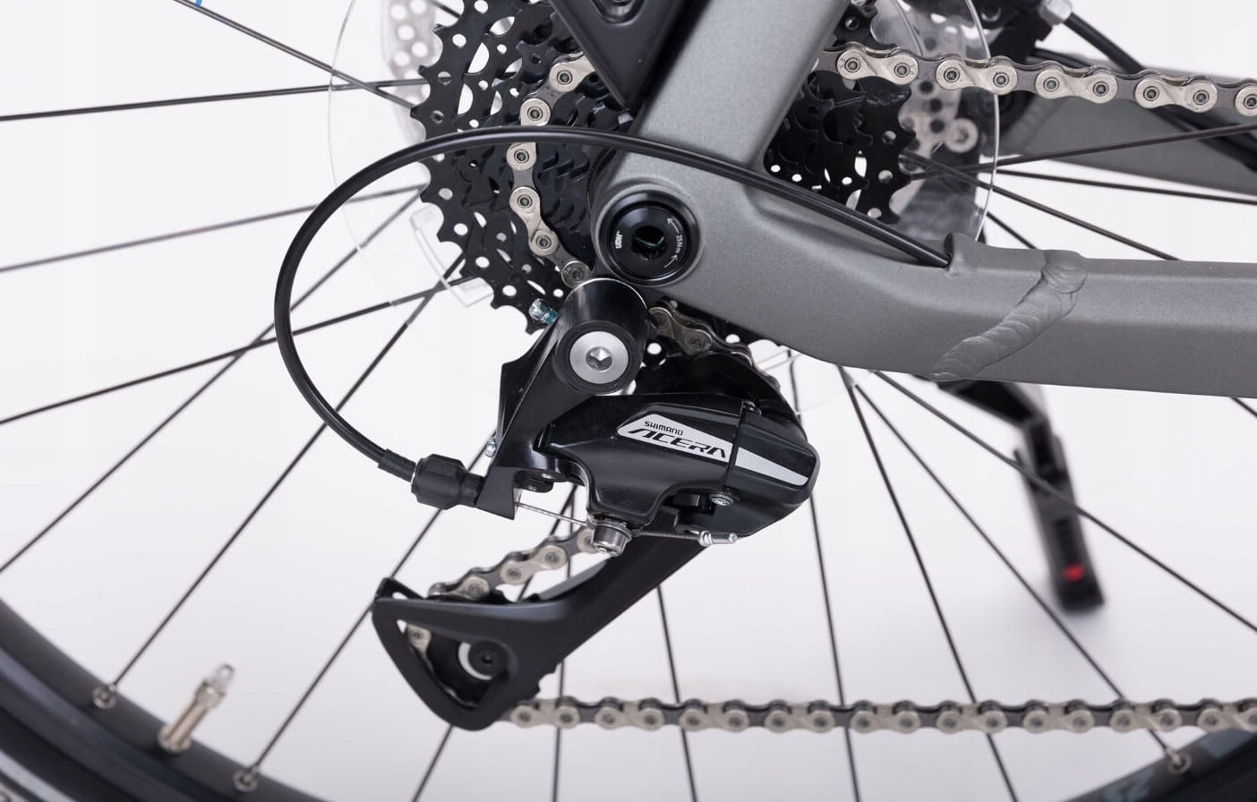 - Przerzutki: Shimano Acera M3020, 8 Biegi, Altus M315, Rapidfire