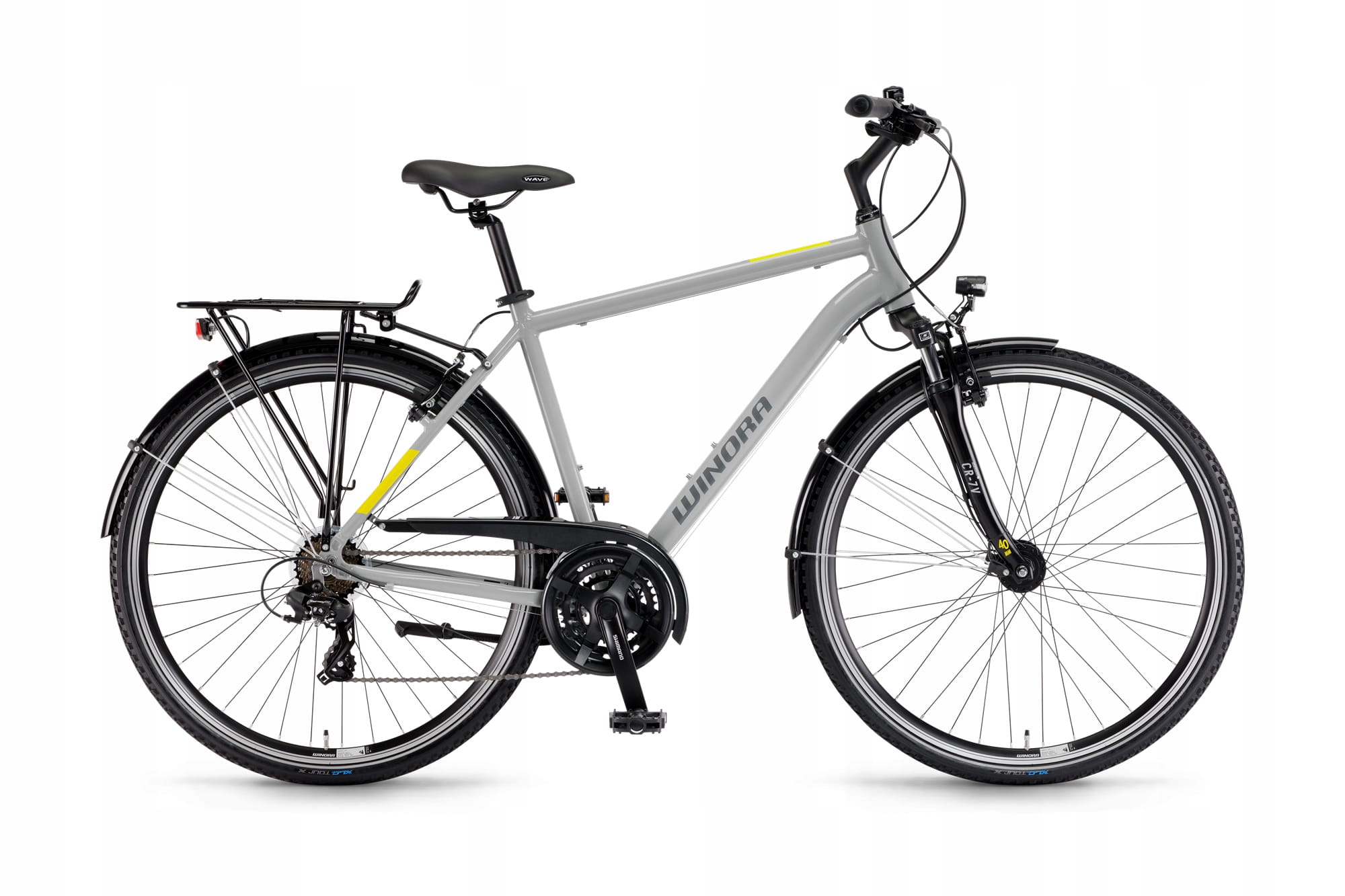 Winora Domingo 21 High to nie tylko elegancki rower, ale przede wszystkim świetny i uniwersalny środek transportu. Szukasz czegoś czym mogłabyś dojechać do pracy albo na zakupy? A może lubisz weekendowe wycieczki rowerowe? Model Domingo 21 będzie idealnym wyborem. Wysokiej jakości, lekka, aluminiowa rama jest odporna na powstawanie korozji. Amortyzowany widelec SR Suntour sprawia, że pokonywanie nierówności na drodze jest prostsze i bardziej komfortowe. Napęd Shimano 3x7 zapewnia bardziej dynamiczną jazdę podczas pokonywania trudniejszych szlaków. Dodatkowo rower został wyposażony w bagażnik, błotniki i światła, dzięki czemu jest jeszcze bardziej wszechstronny.