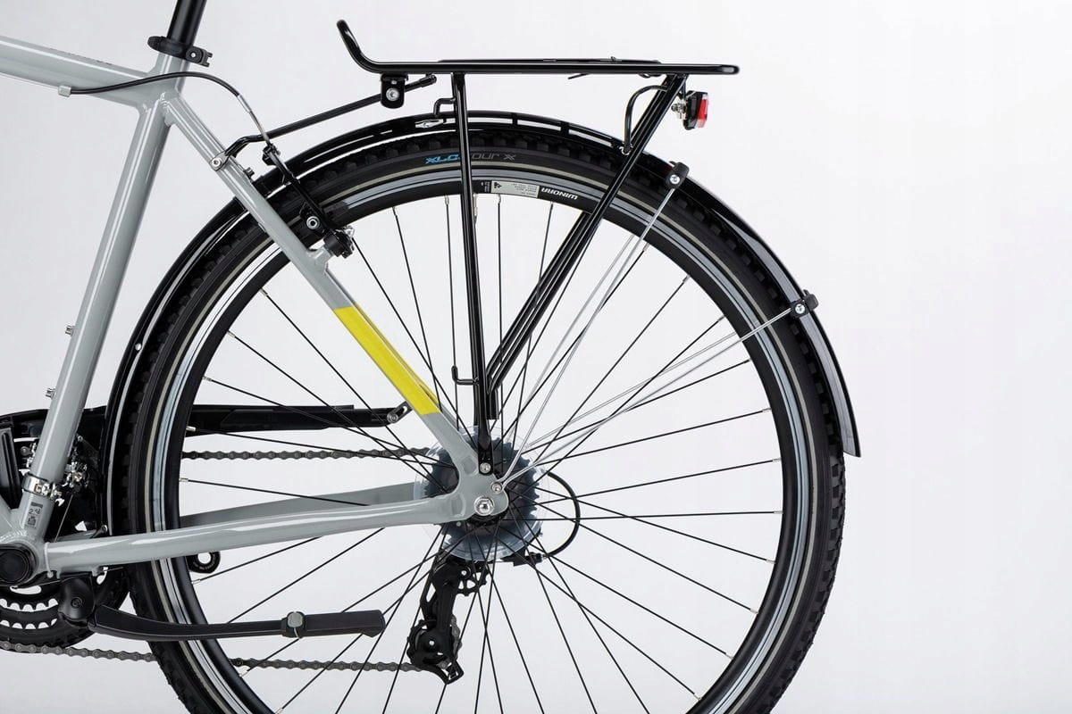 Zamontowany bagażnik pozwala wygodnie przewieźć dodatkowy ekwipunek czy zakupy. Przednie i tylne błotniki chronią rowerzystę przed błotem i wodą, a oświetlenie zwiększa widoczność i zwiększa bezpieczeństwo w trakcie jazdy.