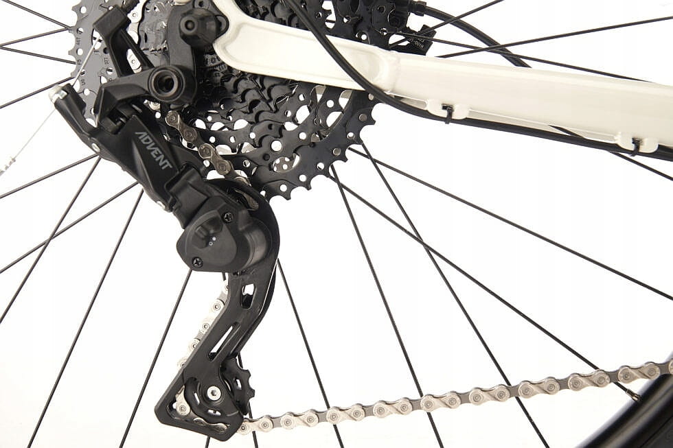 Napęd 1x9 dobrze sprawdza się na trudnych trasach, ponieważ jest łatwy w użyciu. Tylna przerzutka ze sprzęgłem zapobiega obijaniu się łańcucha o ramę. Przedni amortyzator Suntour XCR 32 LO-R ze skokiem 100mm zapewnia dobre tłumienie drgań, a hydrauliczne hamulce Tektro HDM275 działają z dużą siłą.