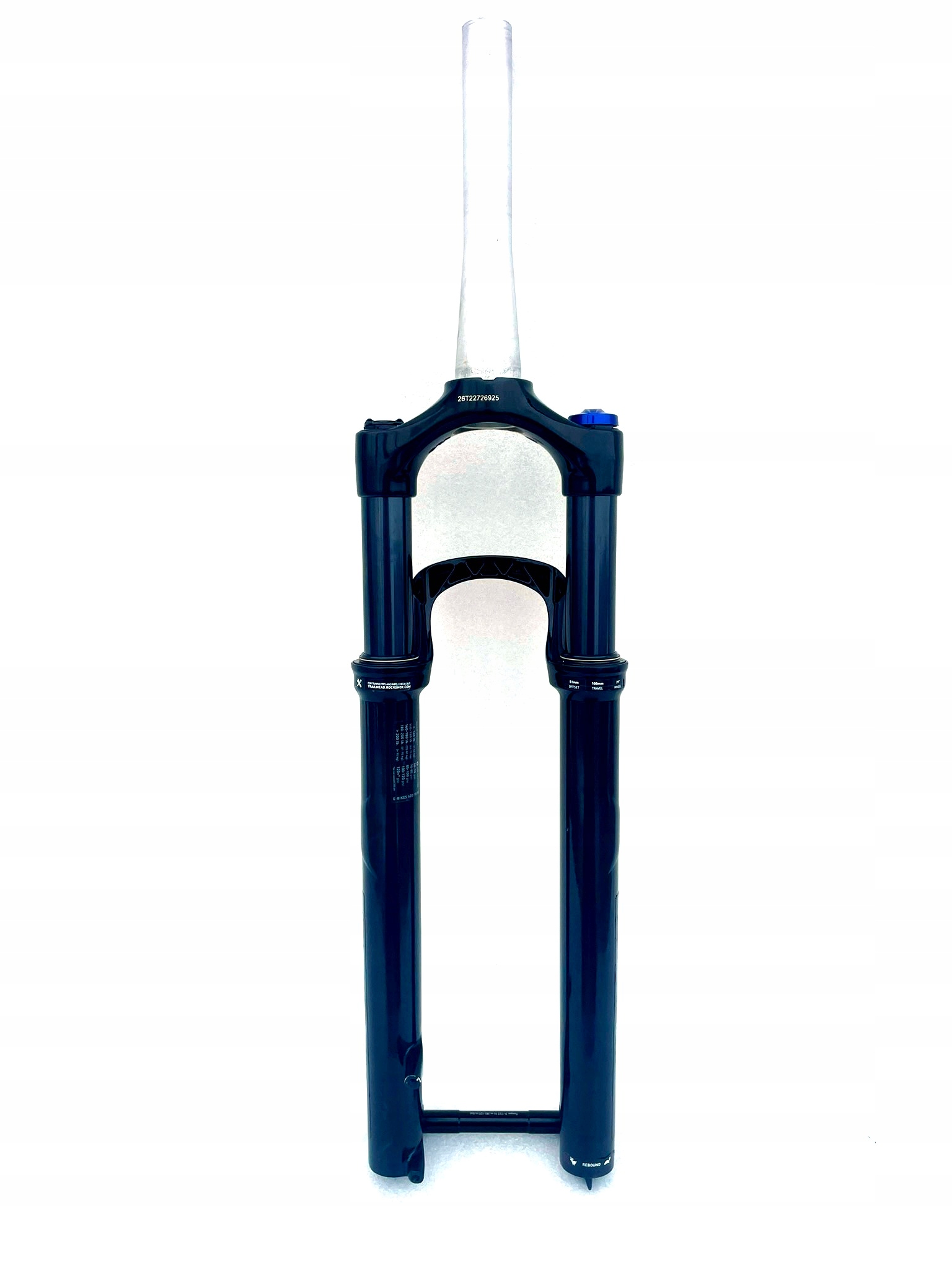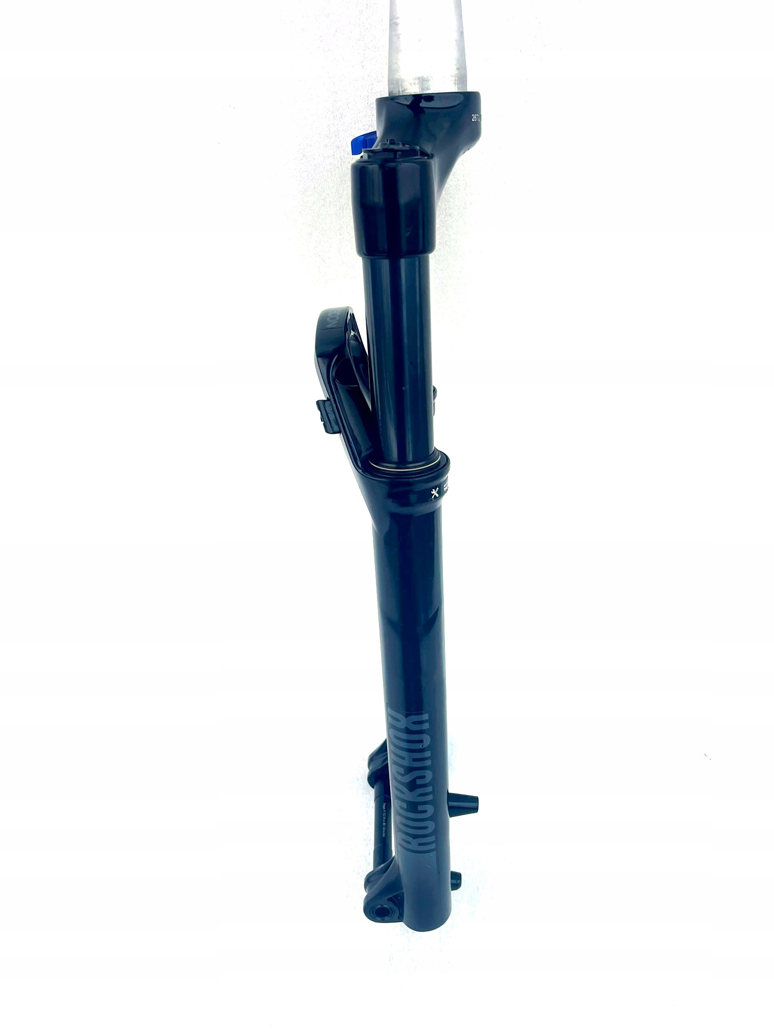 Widelec pochodzi z demontażu z roweru o niewielkim przebiegu. Był użytkowany krótko, jest w pełni sprawny, bez wycieków i luzów. Może posiadać delikatne ślady montażu lub krótkiego użytkowania, które nie mają wpływu na działanie.